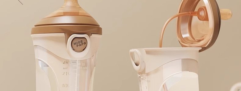 商品名称:奶爸爸(Nice Papa)硅胶翻盖奶瓶240ml-水嘴-咖啡色(有吸管)