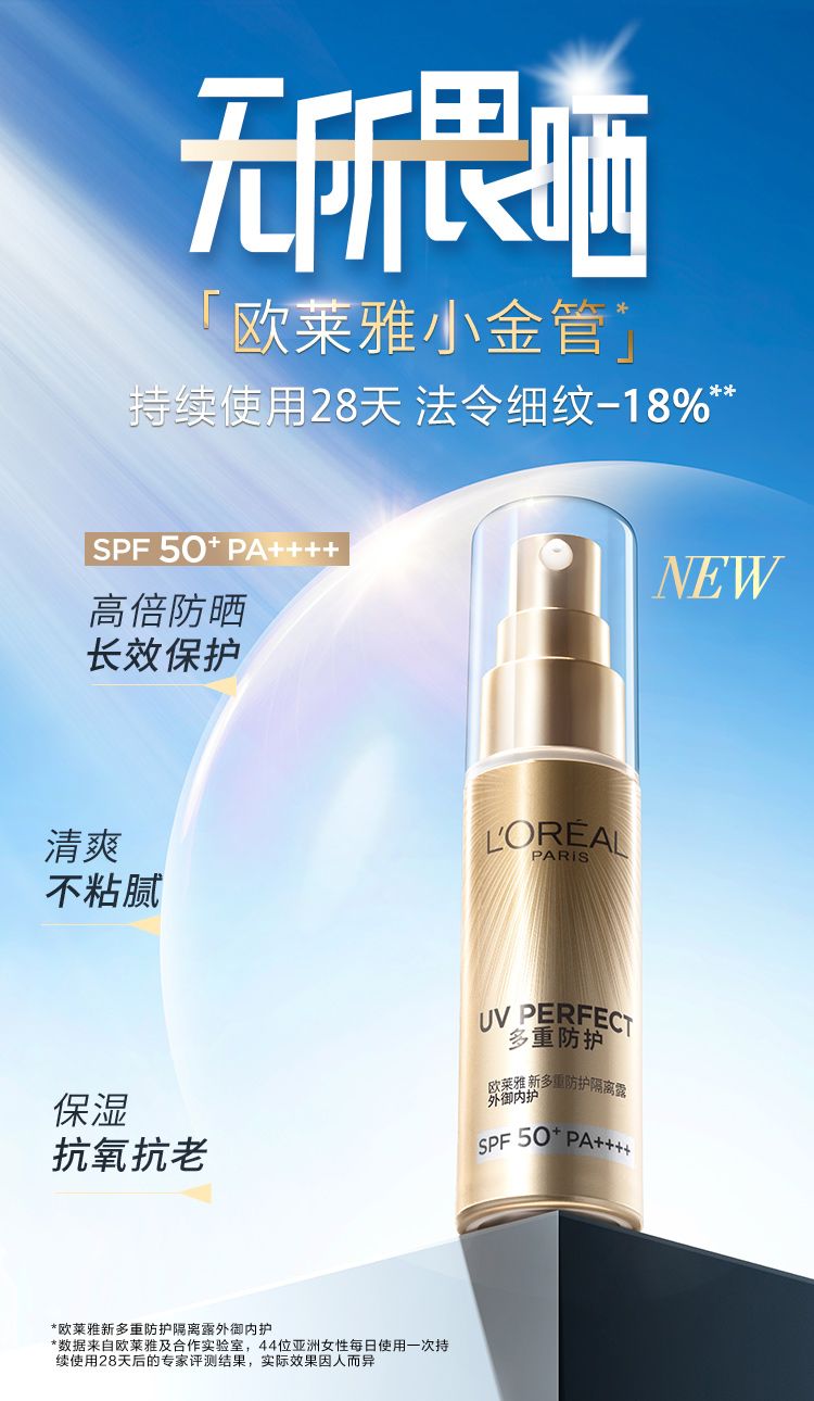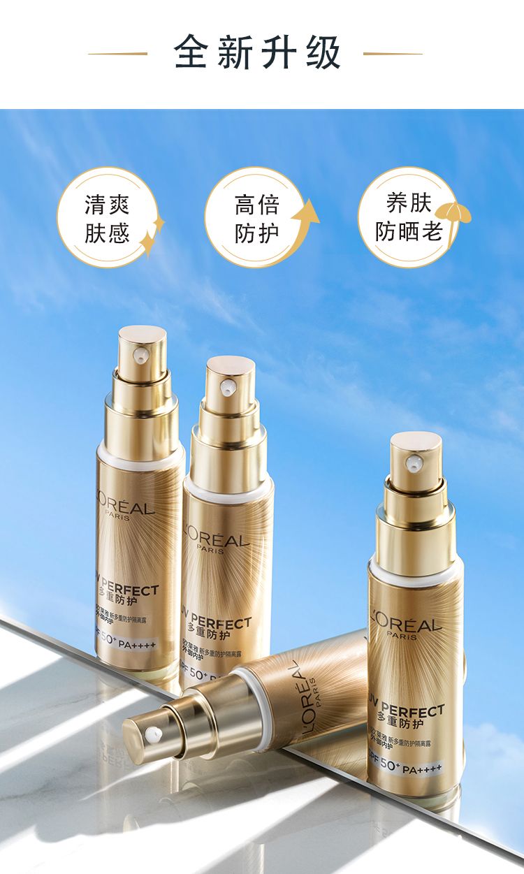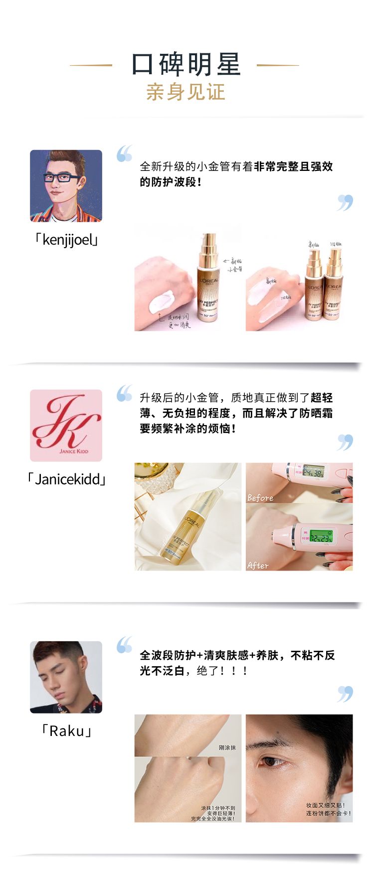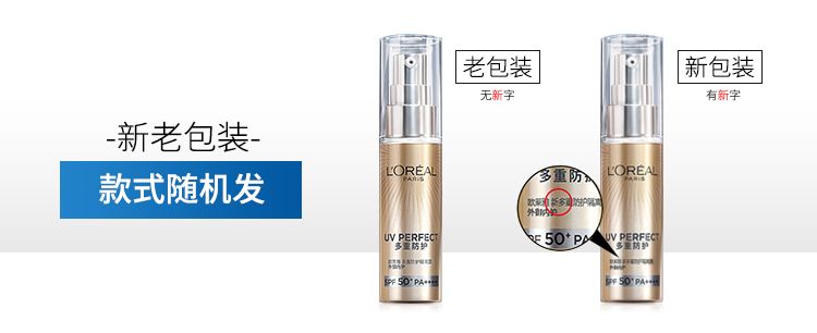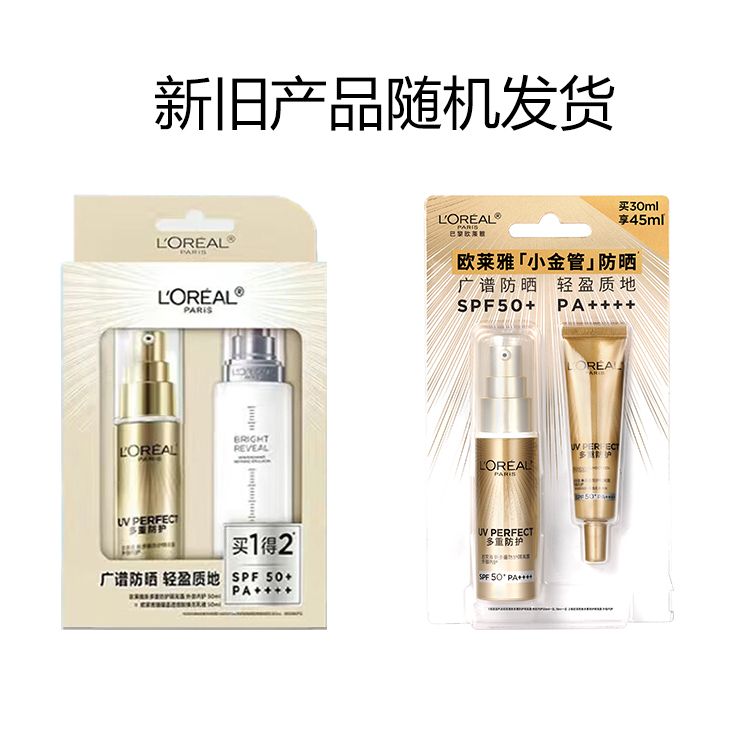 商品名称:L'oreal/欧莱雅 小金管防晒2件套 防晒霜30ml+乳液50ml 新旧版本随机发