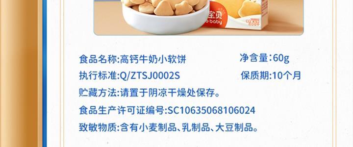 商品名称:不二宝贝 高钙牛奶小软饼 60g