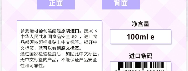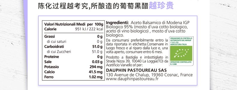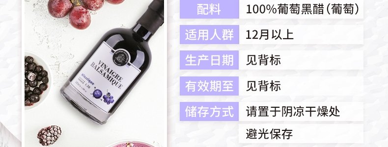 商品名称:法国 多斐(PASTOUREAU) 原装进口诺可葡萄黑醋(经典原味)100ml