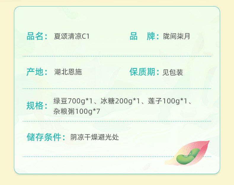 商品名称:陇间柒月绿豆莲子冰糖杂粮粥礼盒夏日消暑夏颂清凉C1