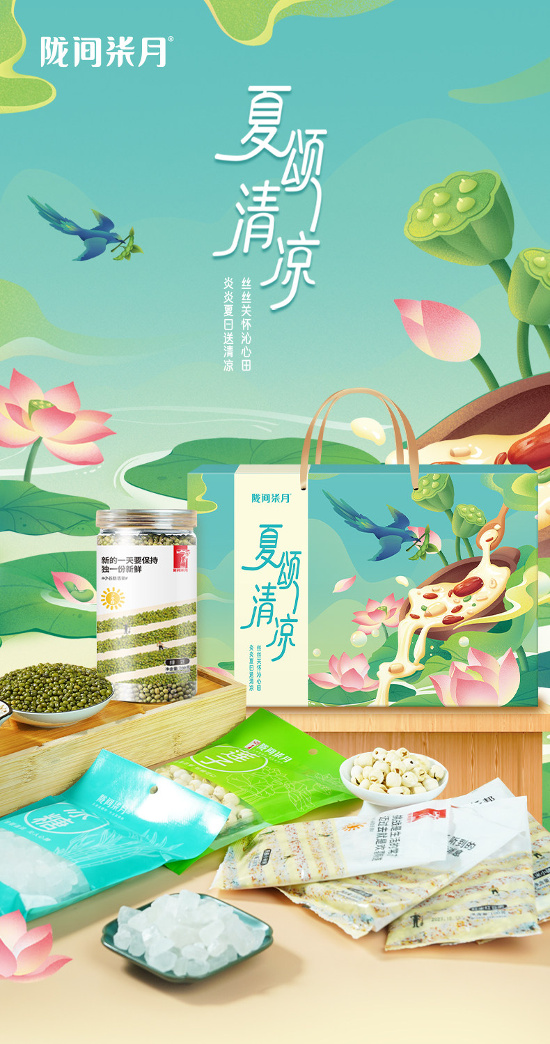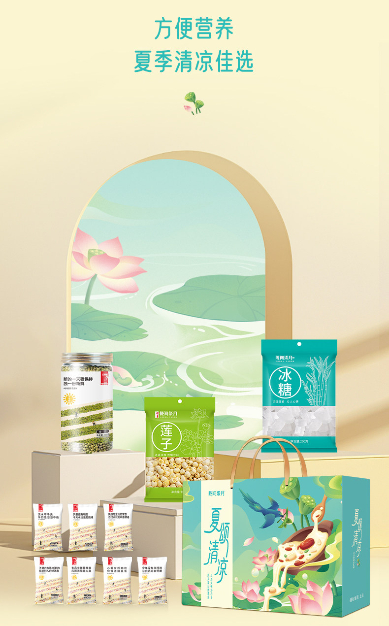 陇间柒月绿豆莲子冰糖杂粮粥礼盒夏日消暑夏颂清凉C1