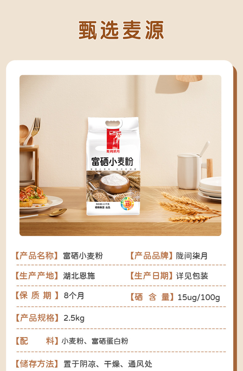 商品名称:陇间柒月富硒小麦粉精选优质高山小麦细腻劲道1kg