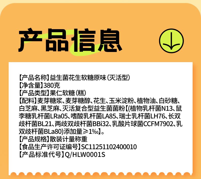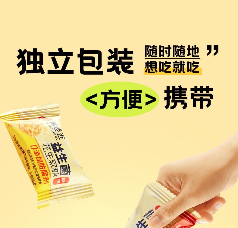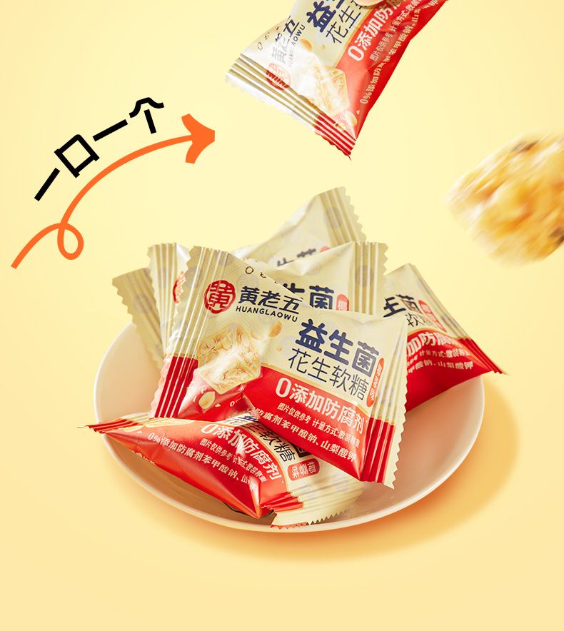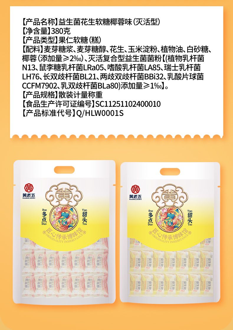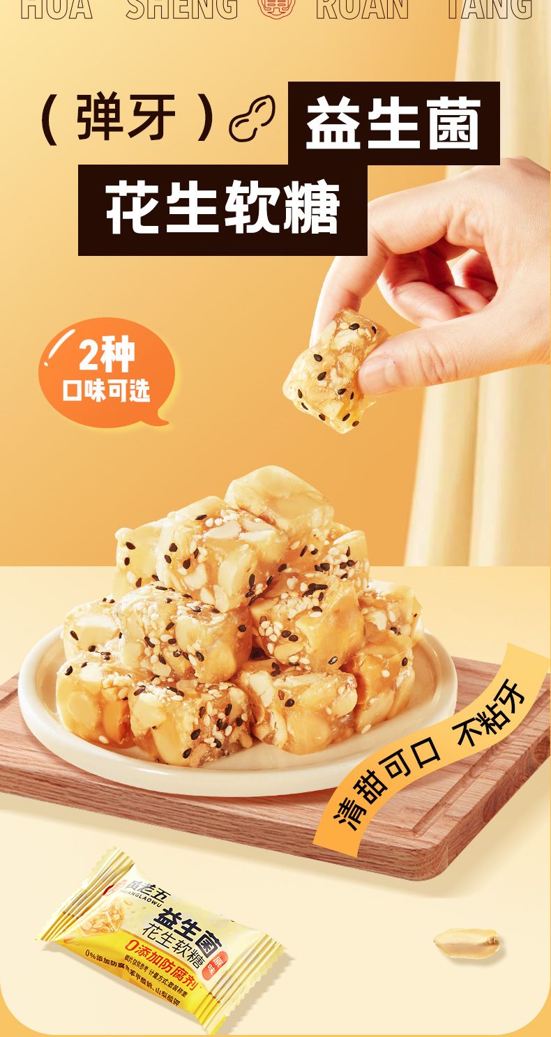 商品名称:黄老五益生菌花生软糖380g(原味/椰蓉味