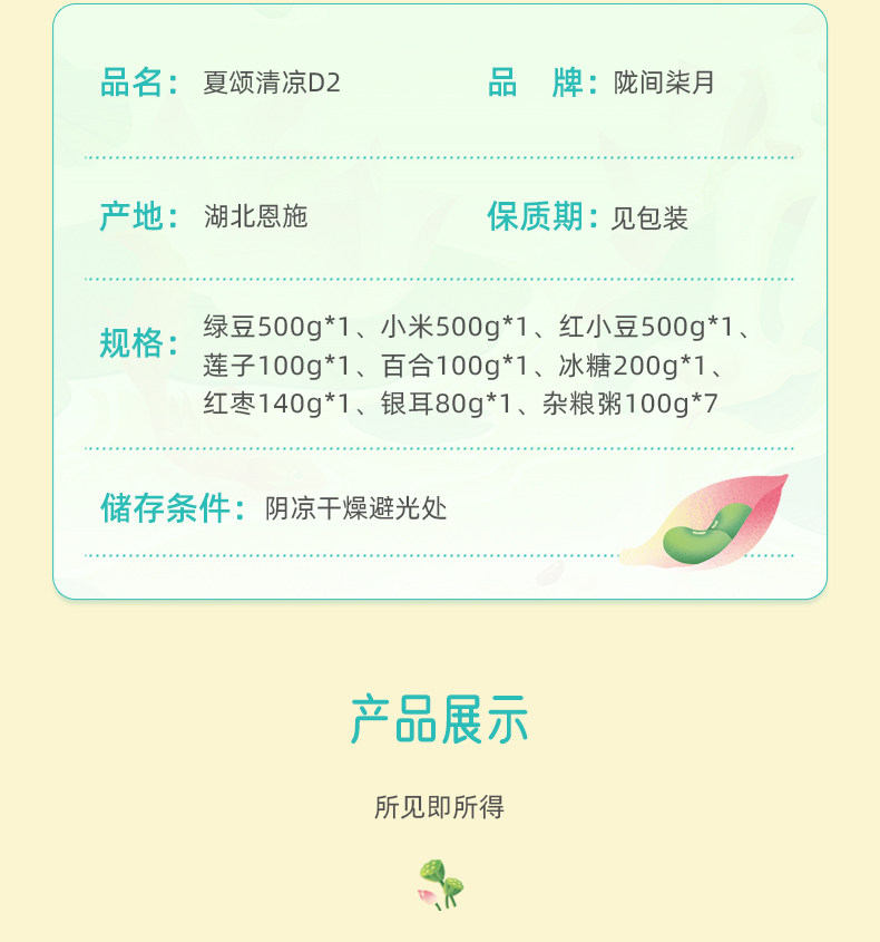 商品名称:陇间柒月绿豆红豆小米百合莲子红枣银耳冰糖杂粮粥礼盒夏日消暑夏颂清凉D2