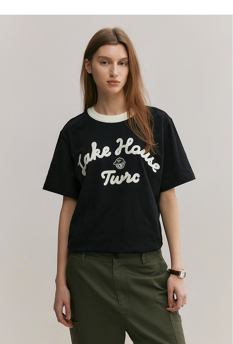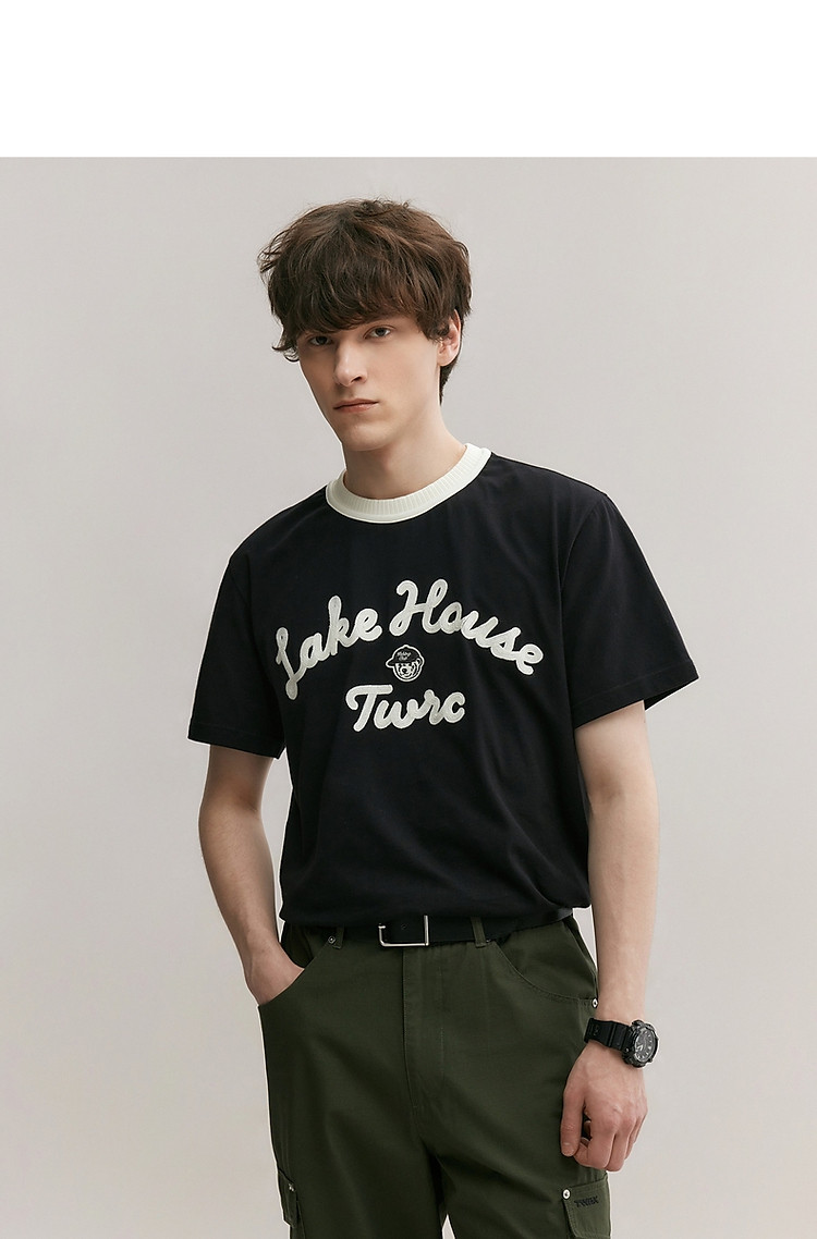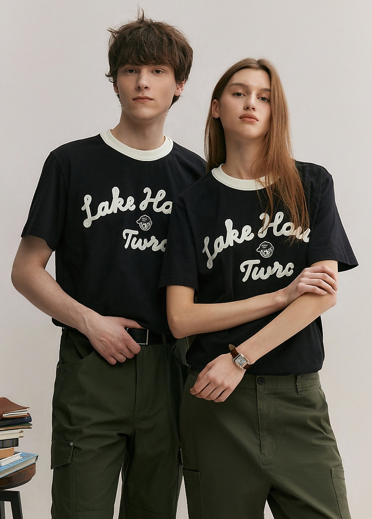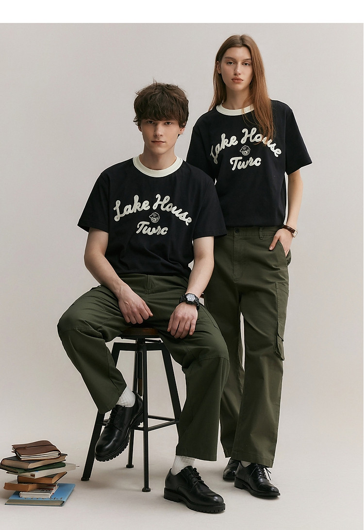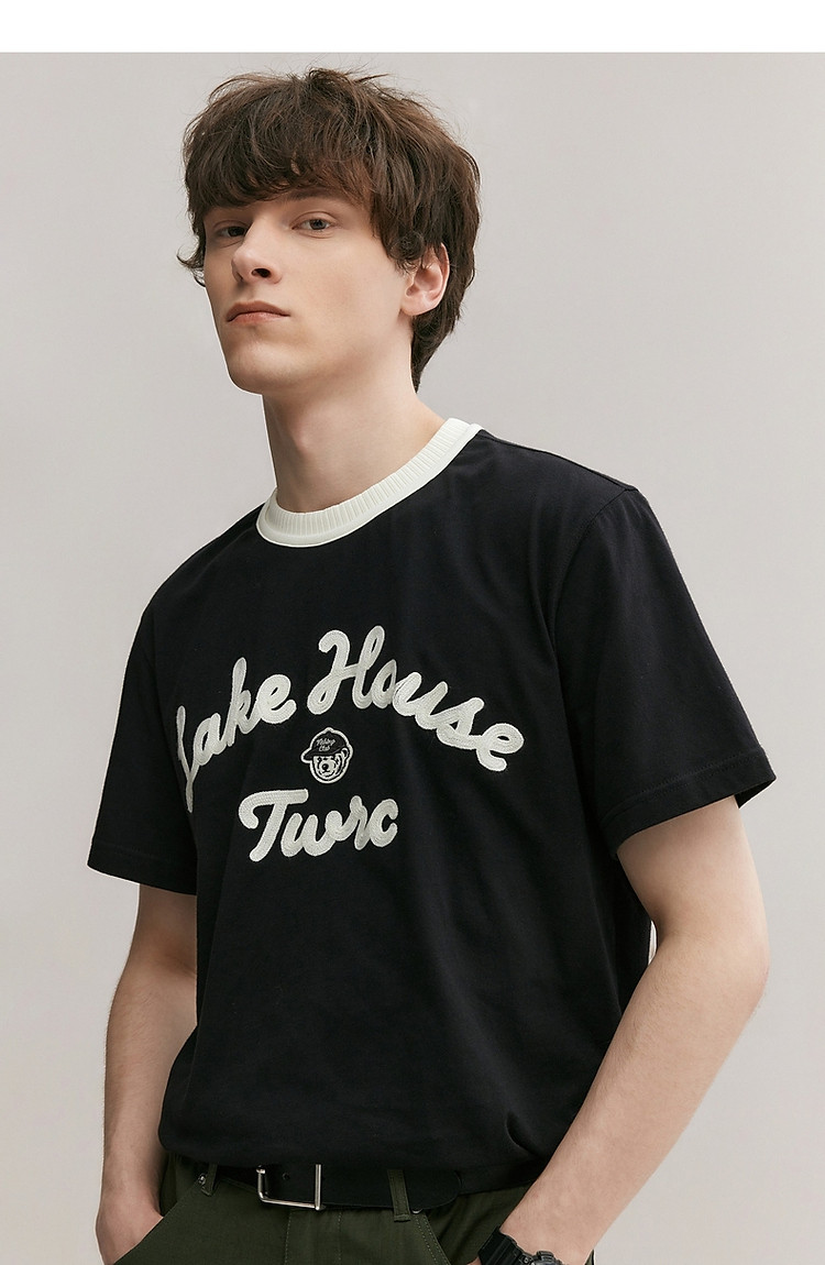 小熊男装简约时尚潮流T恤夏季休闲宽松半袖情侣黑色男士t恤短袖 929537