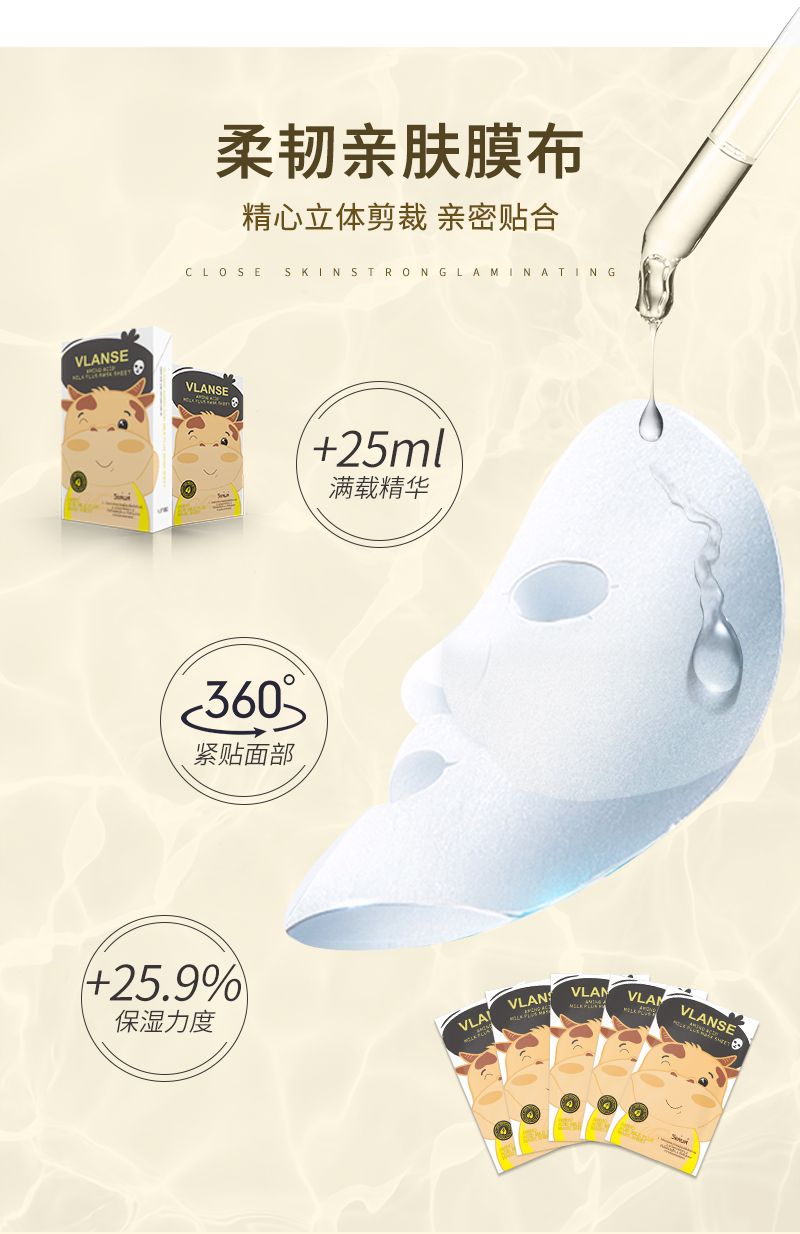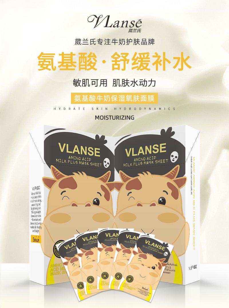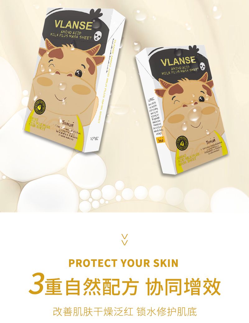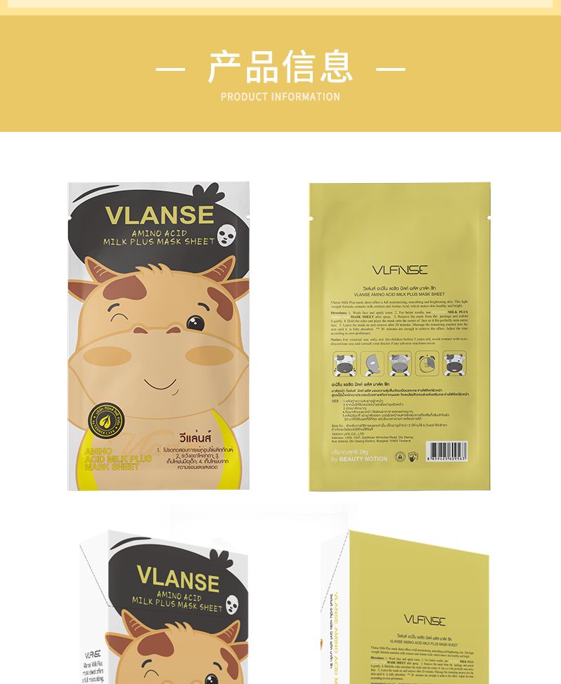 商品名称:VLanse/葳兰氏 氨基酸牛奶保湿氧肤面膜 28g*10片 补水保湿滋润 卡通版