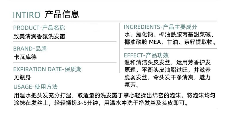 商品名称:卡瓦库德 致美清润香氛洗发露 780ml 柔顺滋养修护
