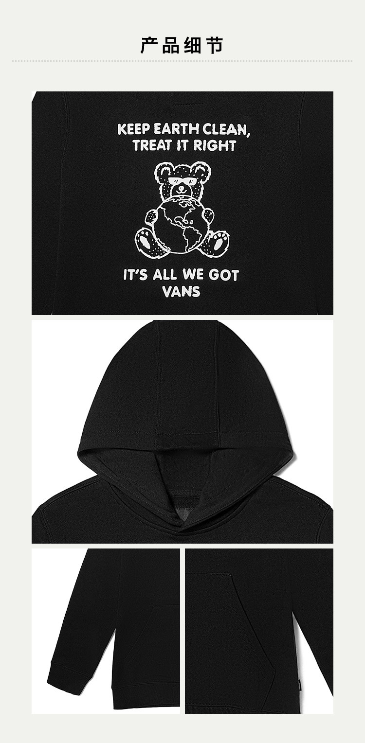 商品名称:官方【品牌直供】 中大童连帽卫衣黑色 146059