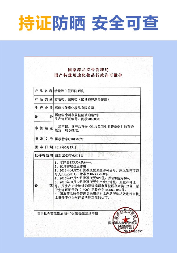 商品名称:片仔癀 牌清盈焕白假日防晒乳隔离 50g
