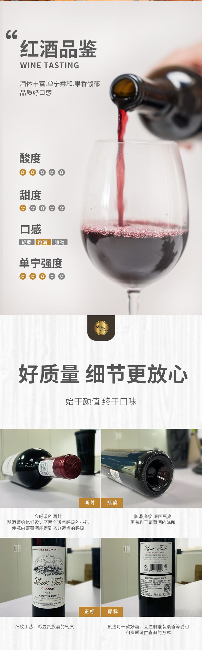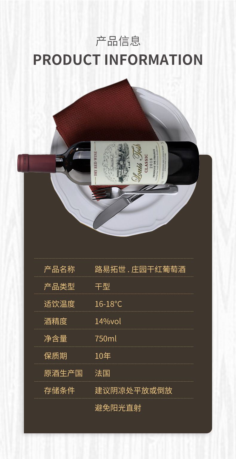商品名称:路易拓世(LUYITUOSHI)庄园干红葡萄酒进口干红葡萄酒高档红酒整箱750ml*6支