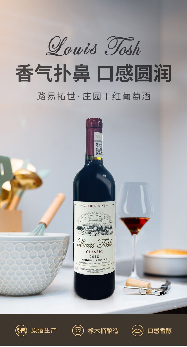 路易拓世(LUYITUOSHI)庄园干红葡萄酒进口干红葡萄酒高档红酒整箱750ml*6支