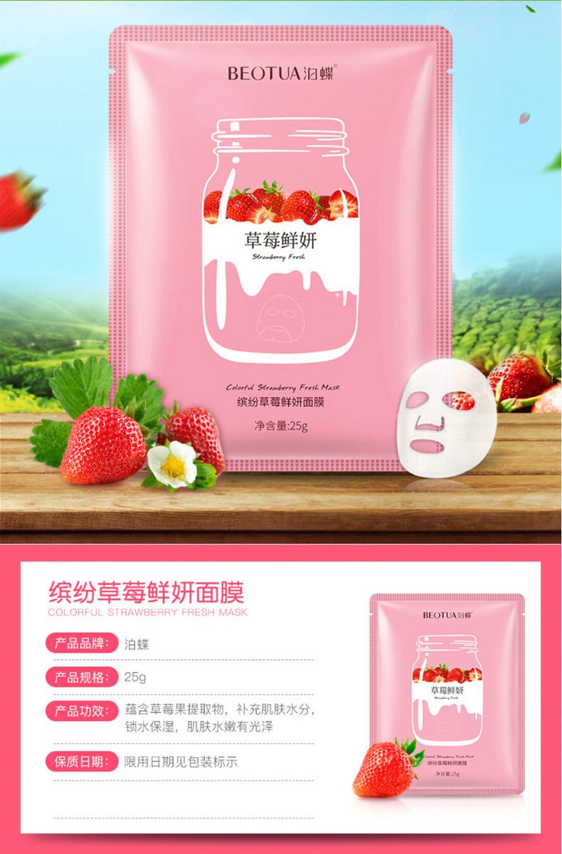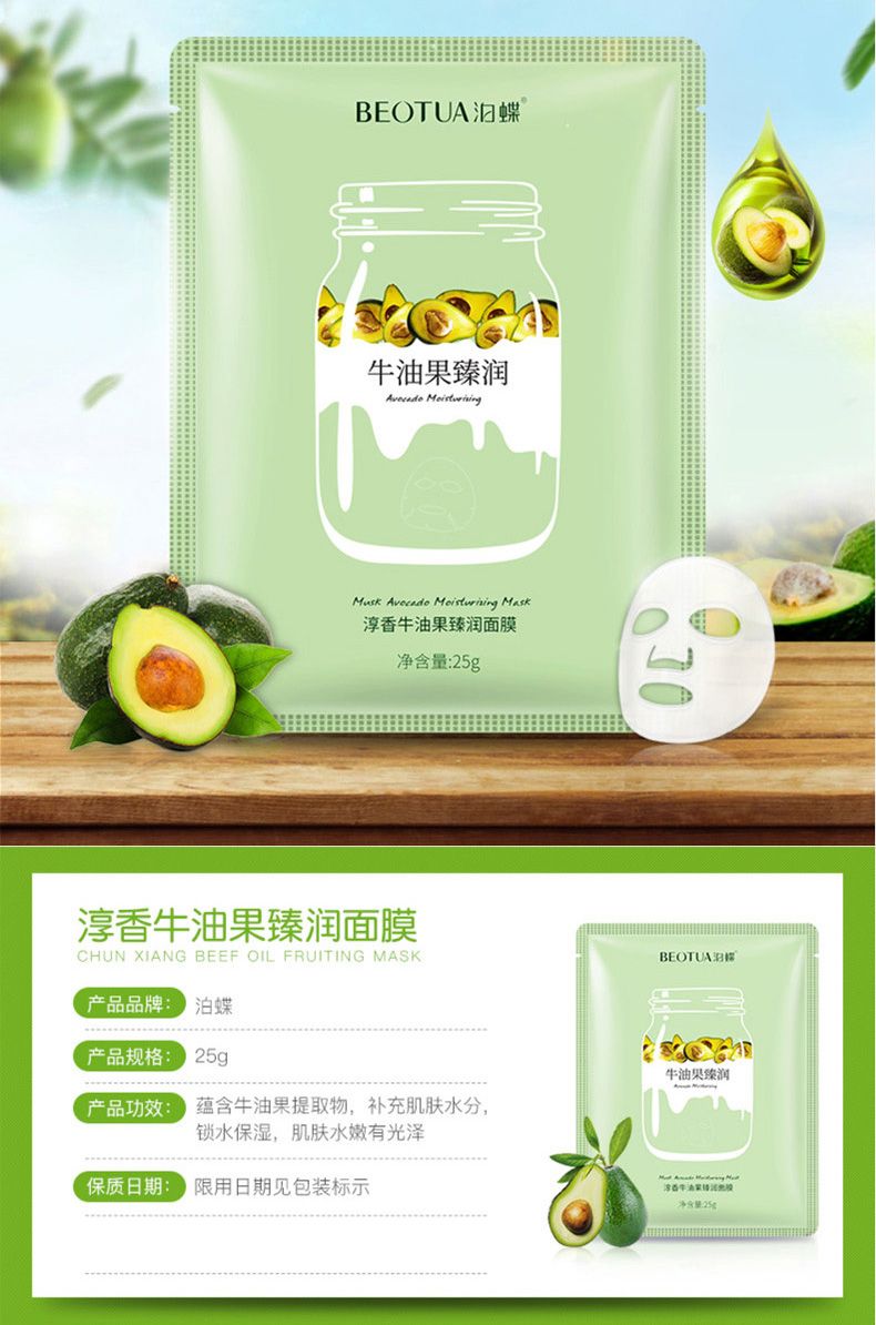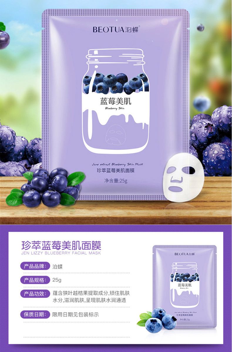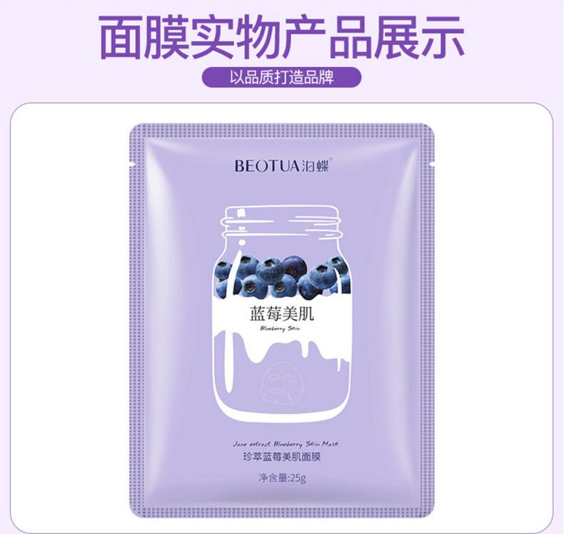 商品名称:泊蝶 珍萃蓝莓草莓牛油果美肌面膜10片/30片/50片 深层补水滋润保湿