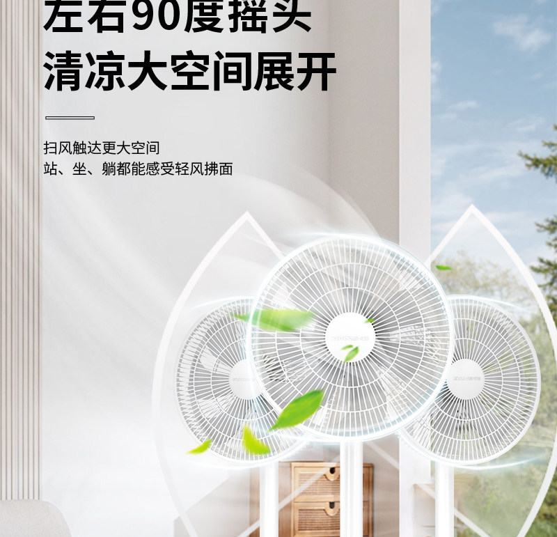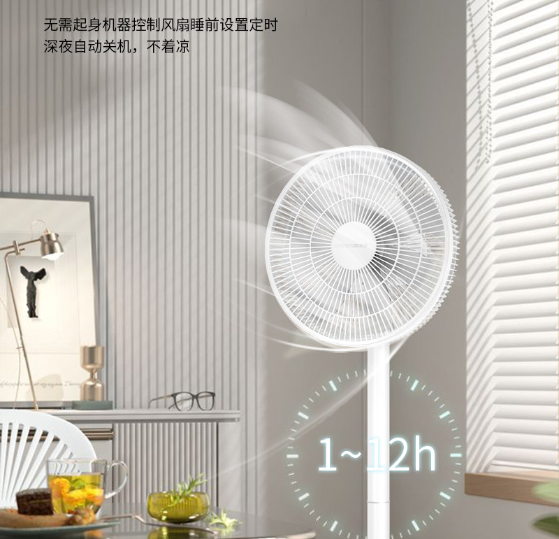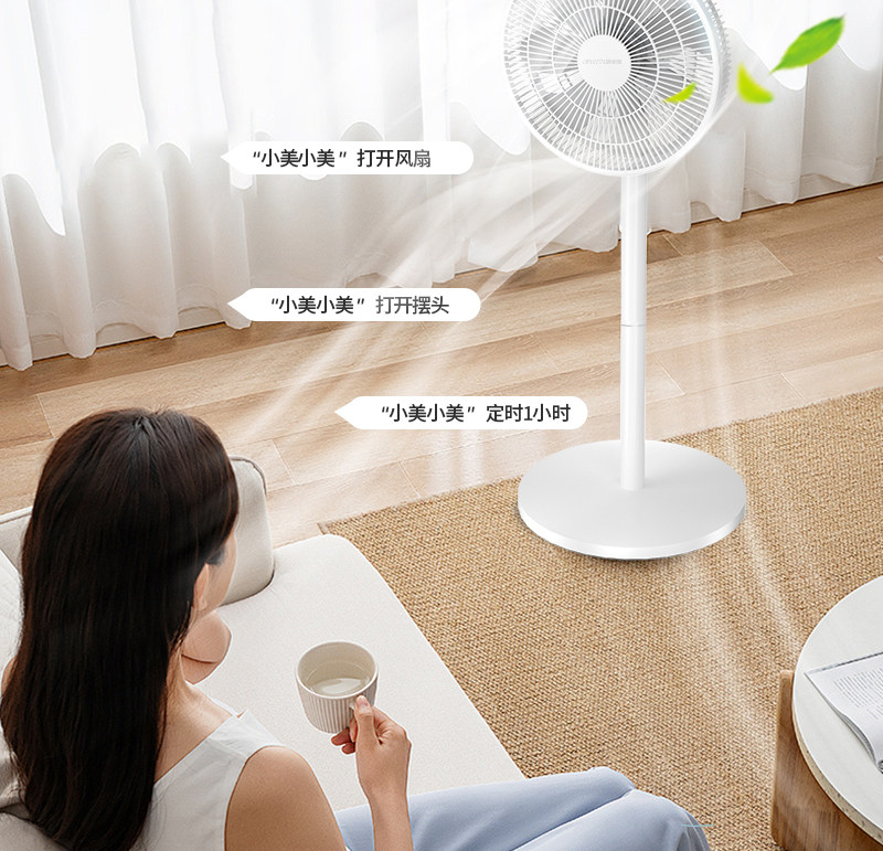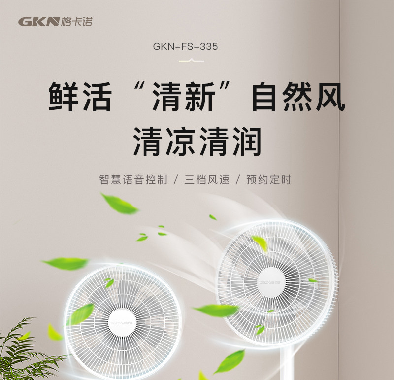 格卡诺风扇语音遥控平面扇家用静音大风力落地扇(陶瓷白)