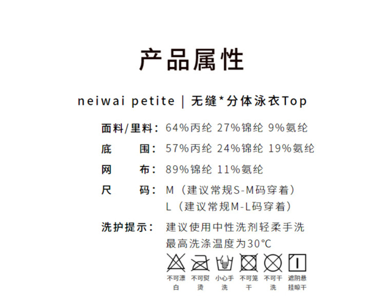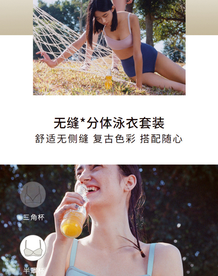 商品名称:NEIWAI内外少女无缝分体泳衣上衣复古舒适 612426