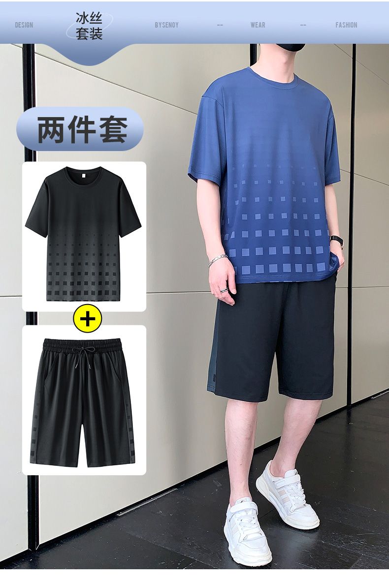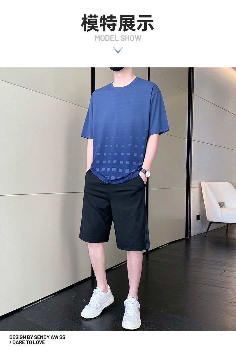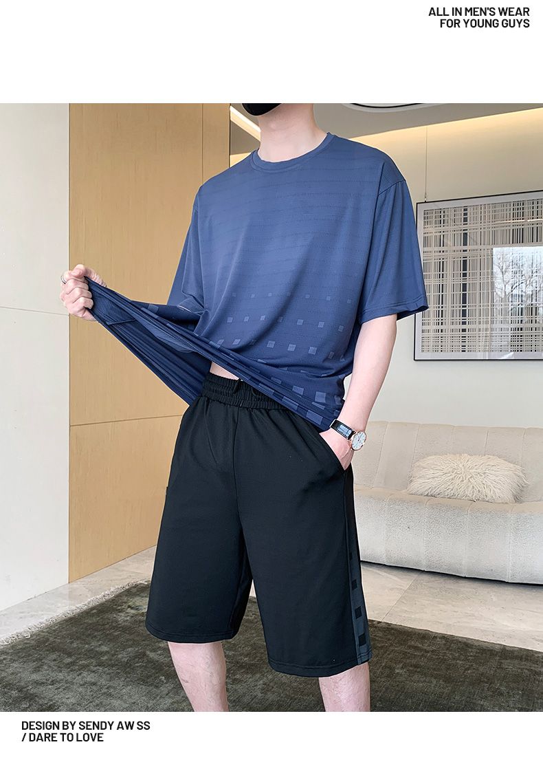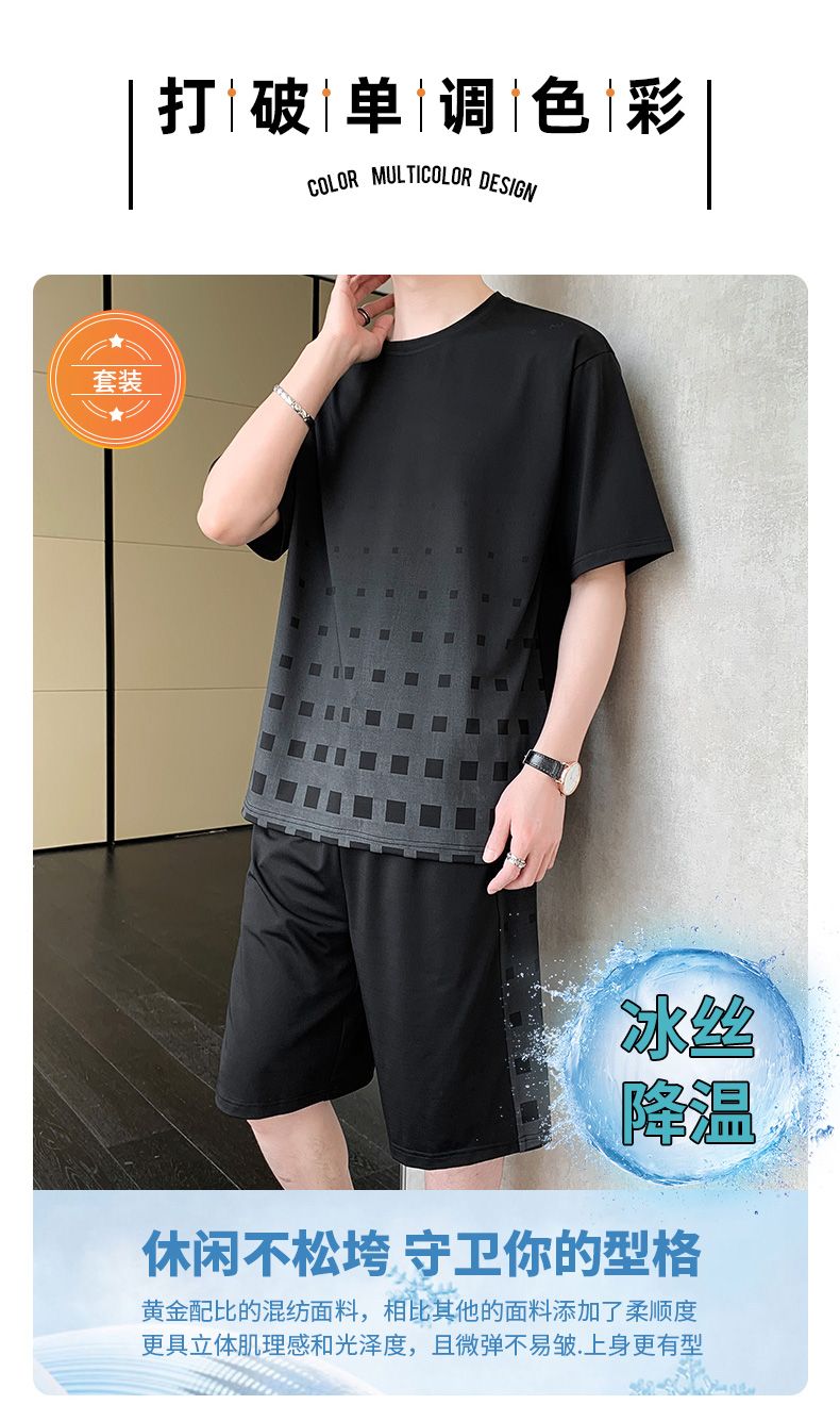 商品名称:型煜 冰丝休闲运动套装男士夏季潮搭配帅气潮牌男装薄款短袖衣服 HH0862