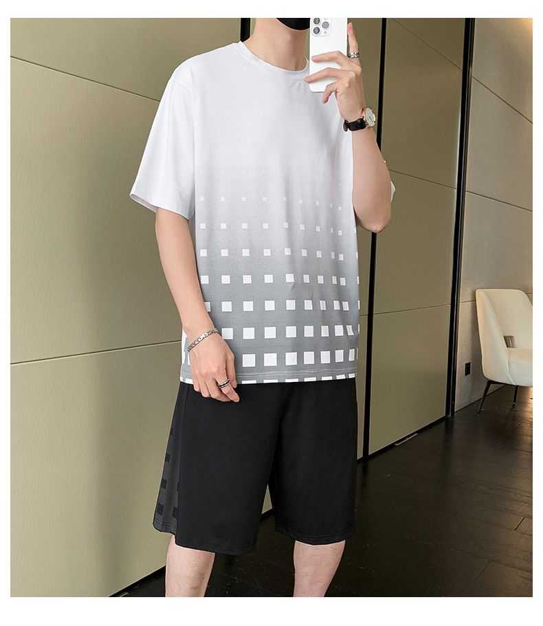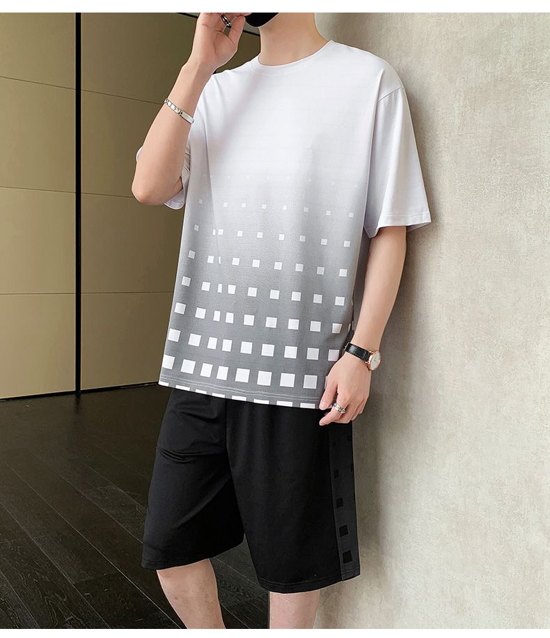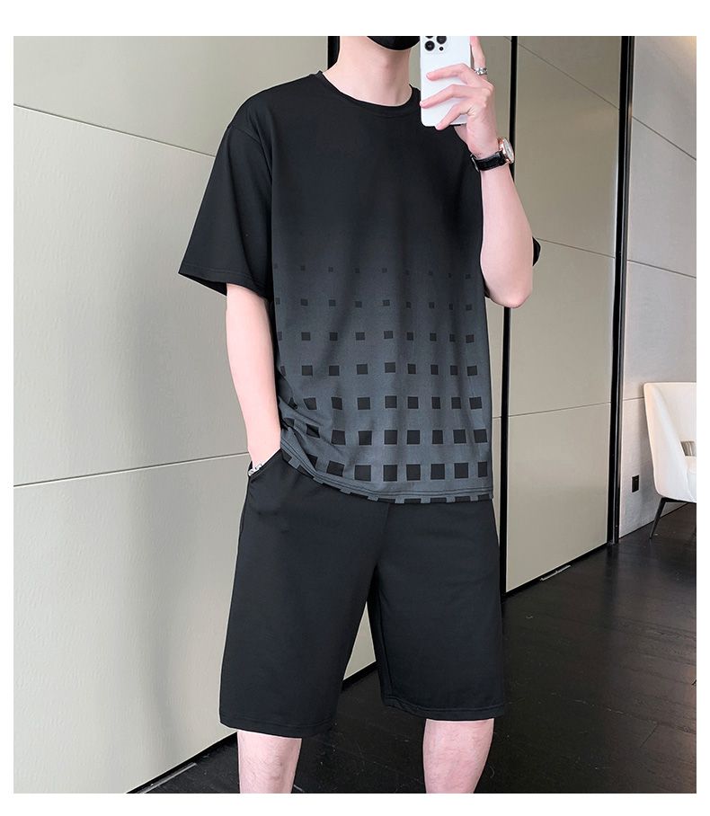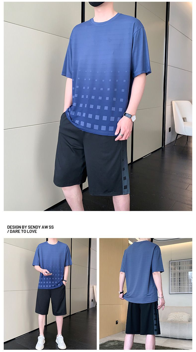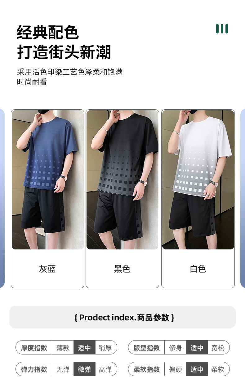 商品名称:型煜 冰丝休闲运动套装男士夏季潮搭配帅气潮牌男装薄款短袖衣服 HH0862