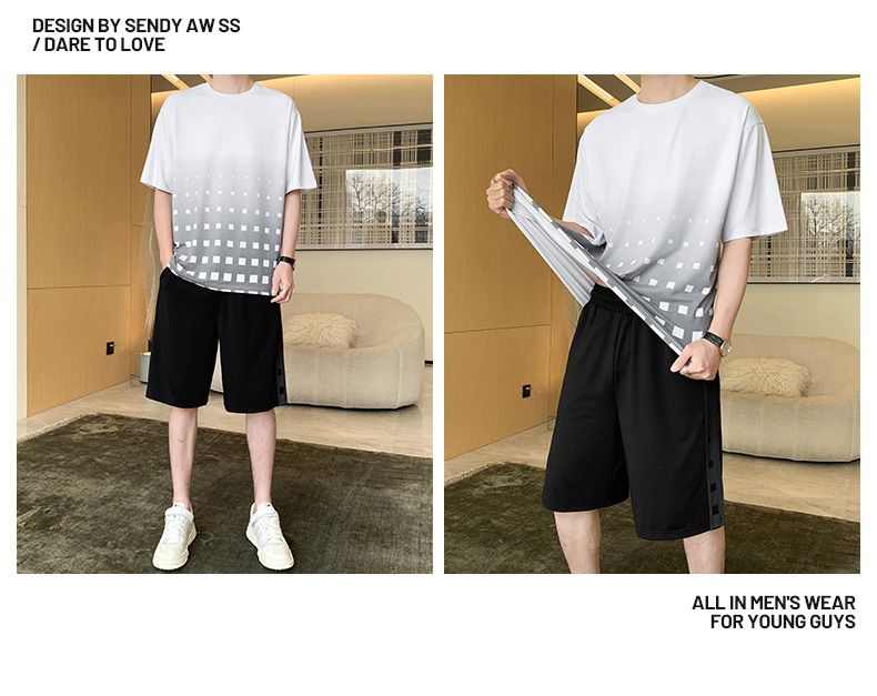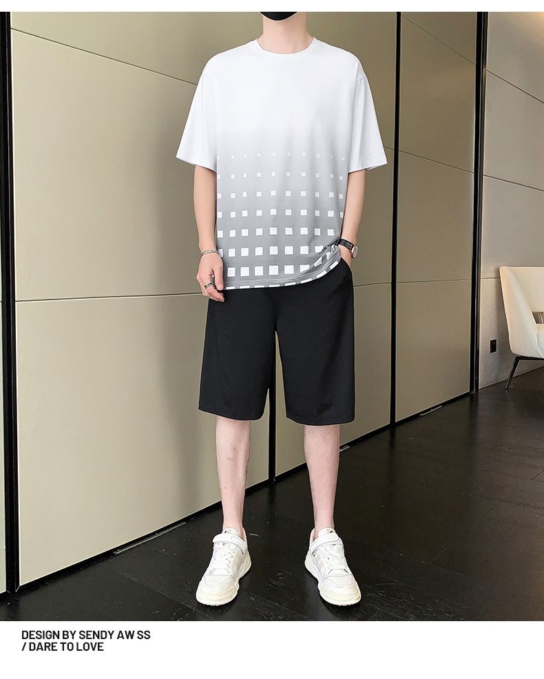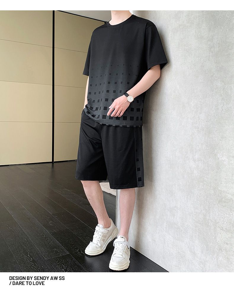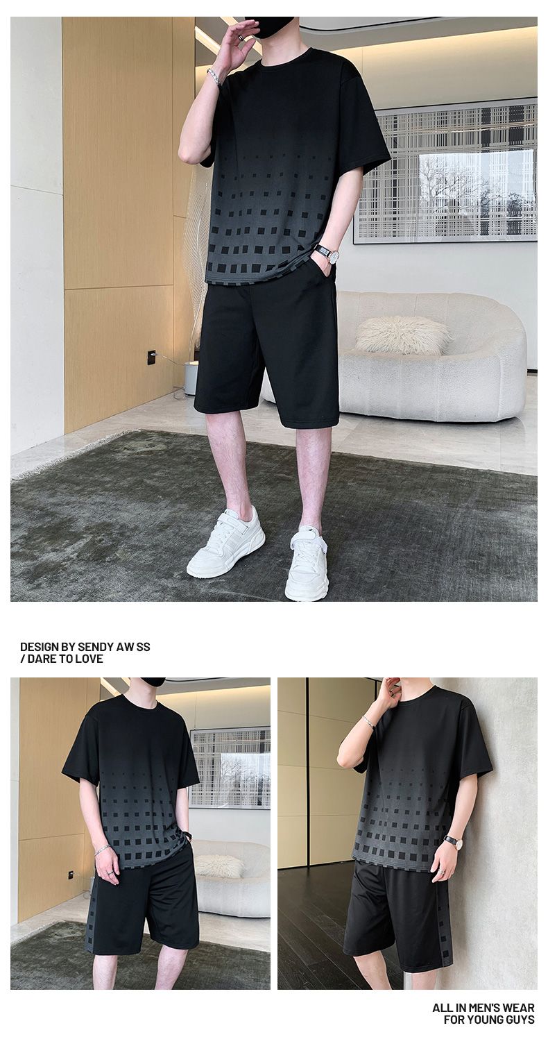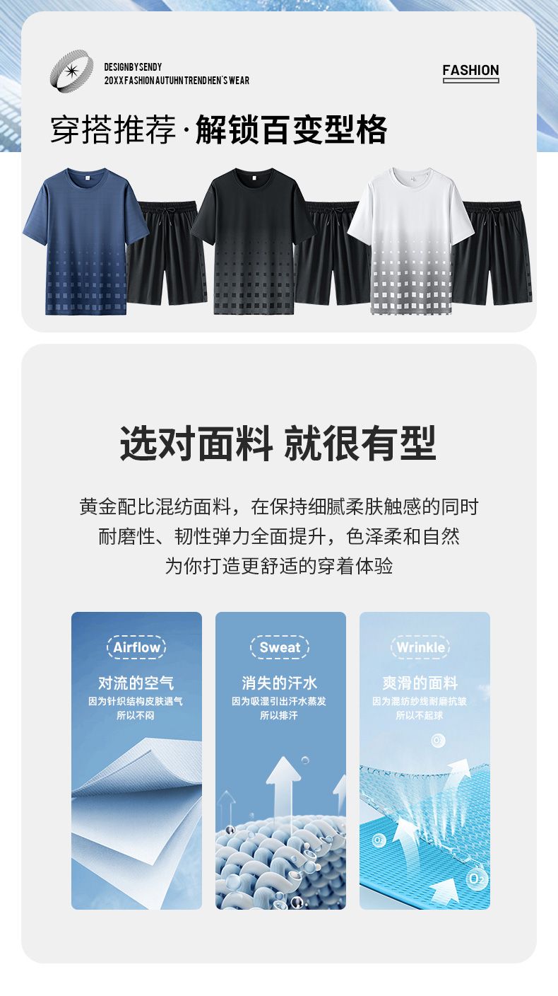 商品名称:型煜 冰丝休闲运动套装男士夏季潮搭配帅气潮牌男装薄款短袖衣服 HH0862