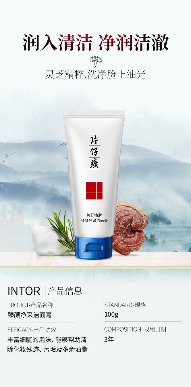 商品名称:片仔癀【灵芝+人参成分】臻颜净采洁面膏100g 泡沫细腻清洁不紧绷