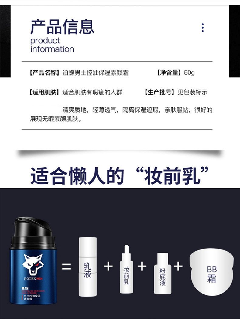 商品名称:泊蝶男士保湿素颜霜50g 面霜清透遮瑕 男士保湿霜