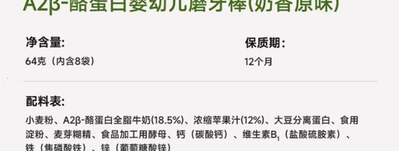 商品名称:不二宝贝 A2β-酪蛋白婴幼儿磨牙棒 64g