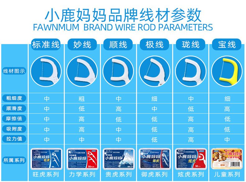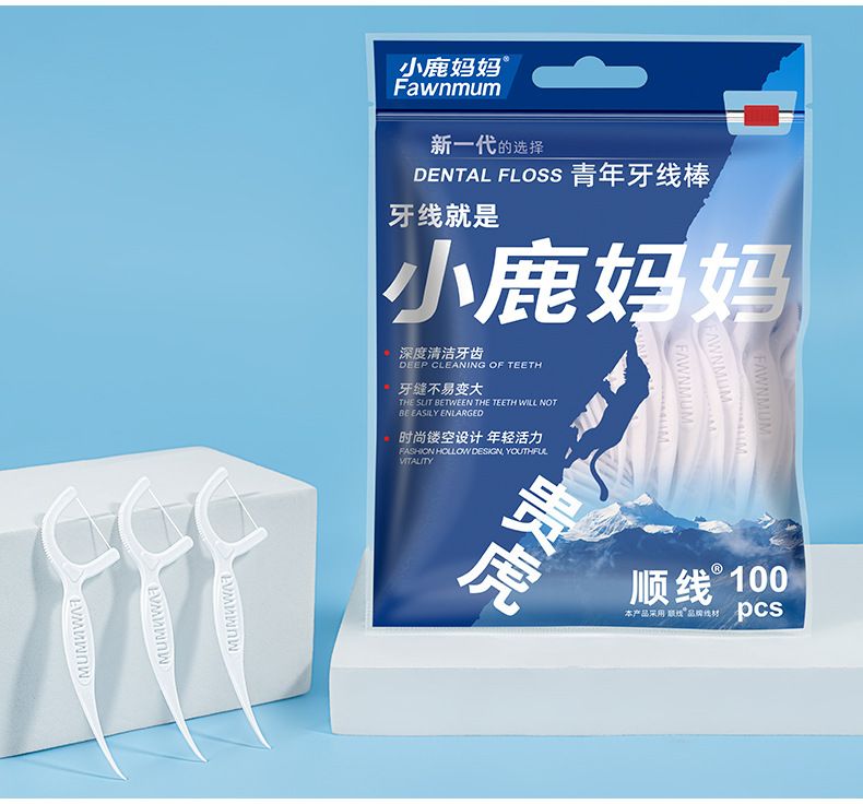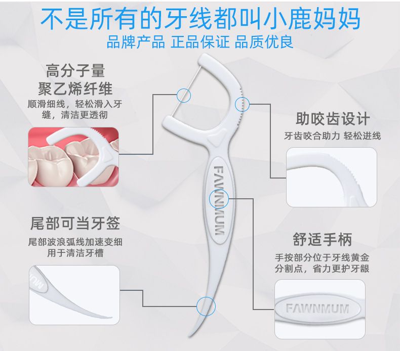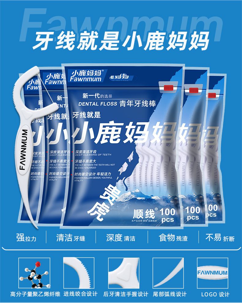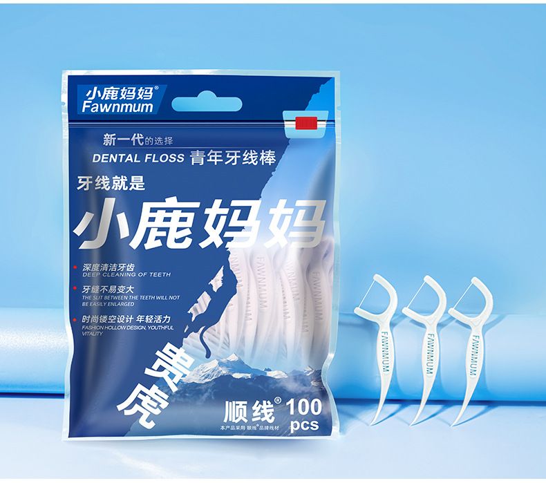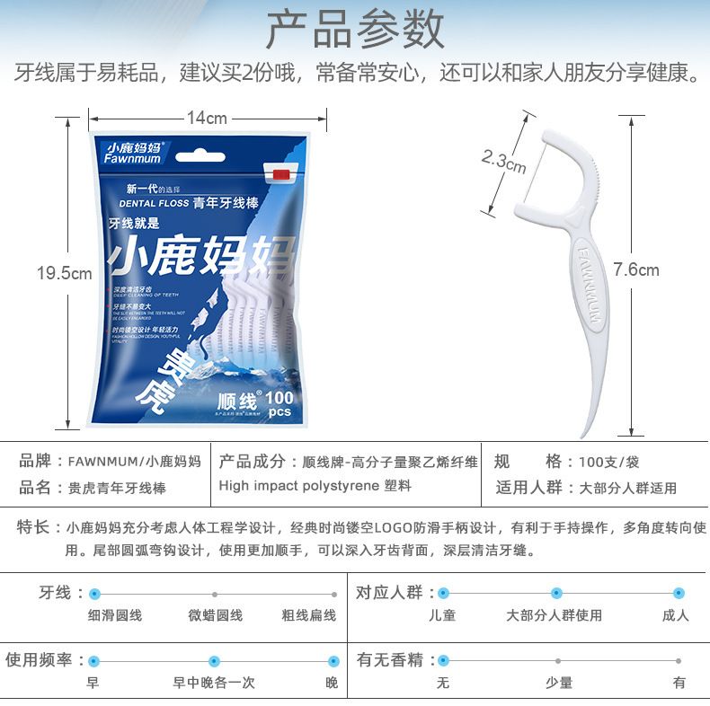 商品名称:小鹿妈妈细滑圆线牙线棒牙签100支/袋*6 (共600支)