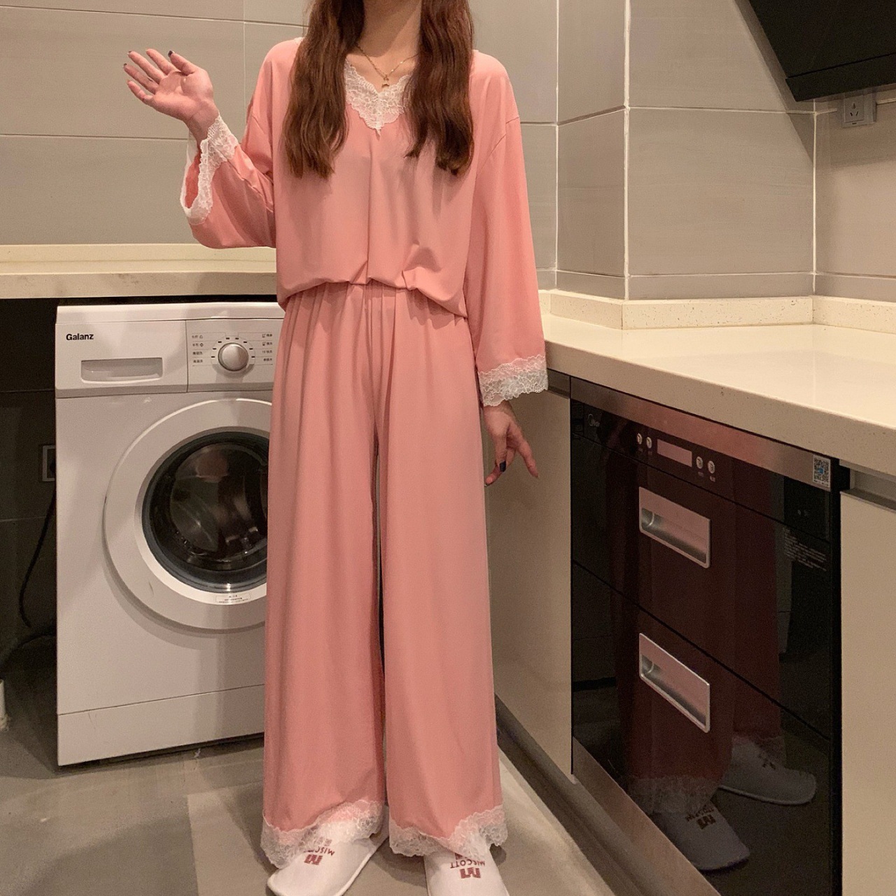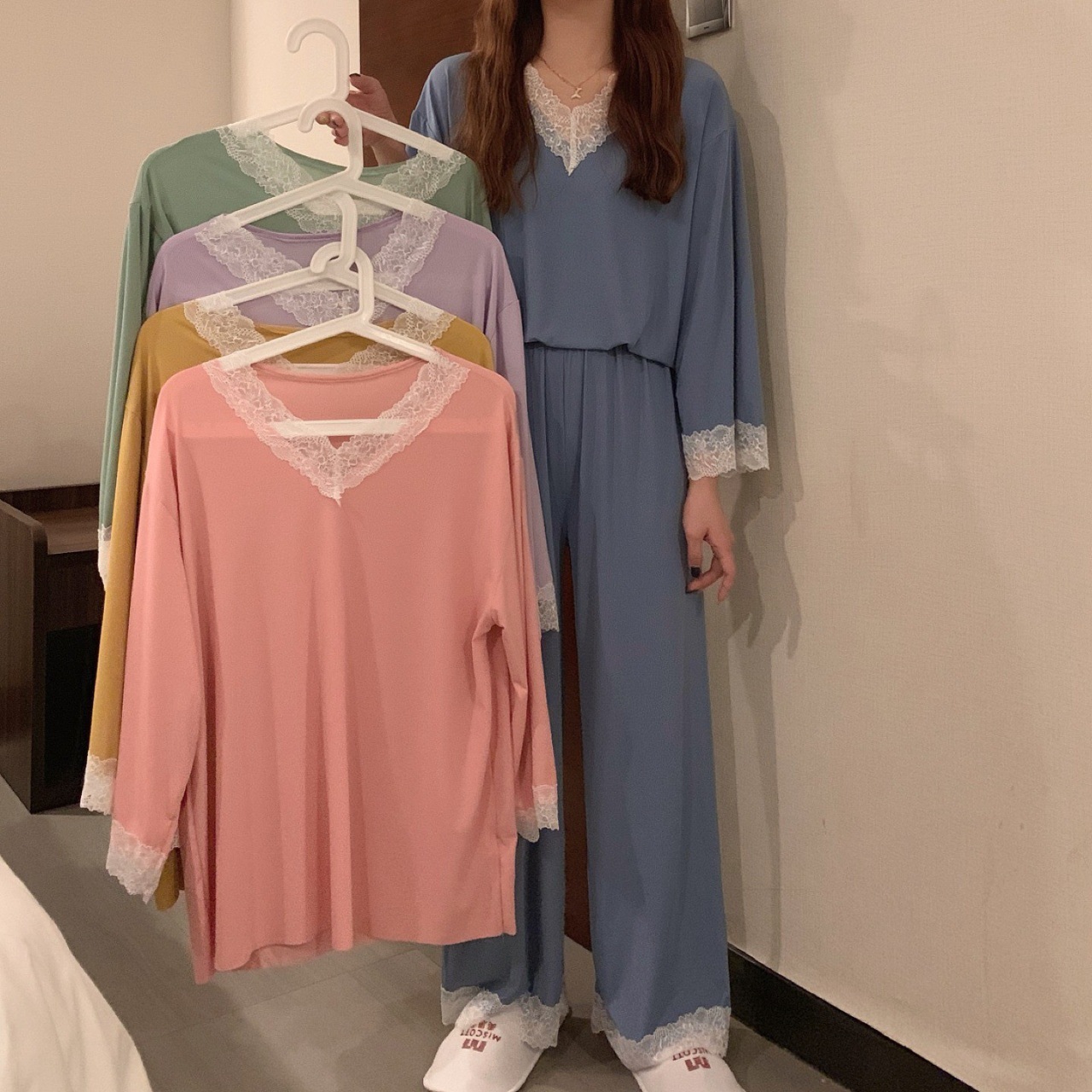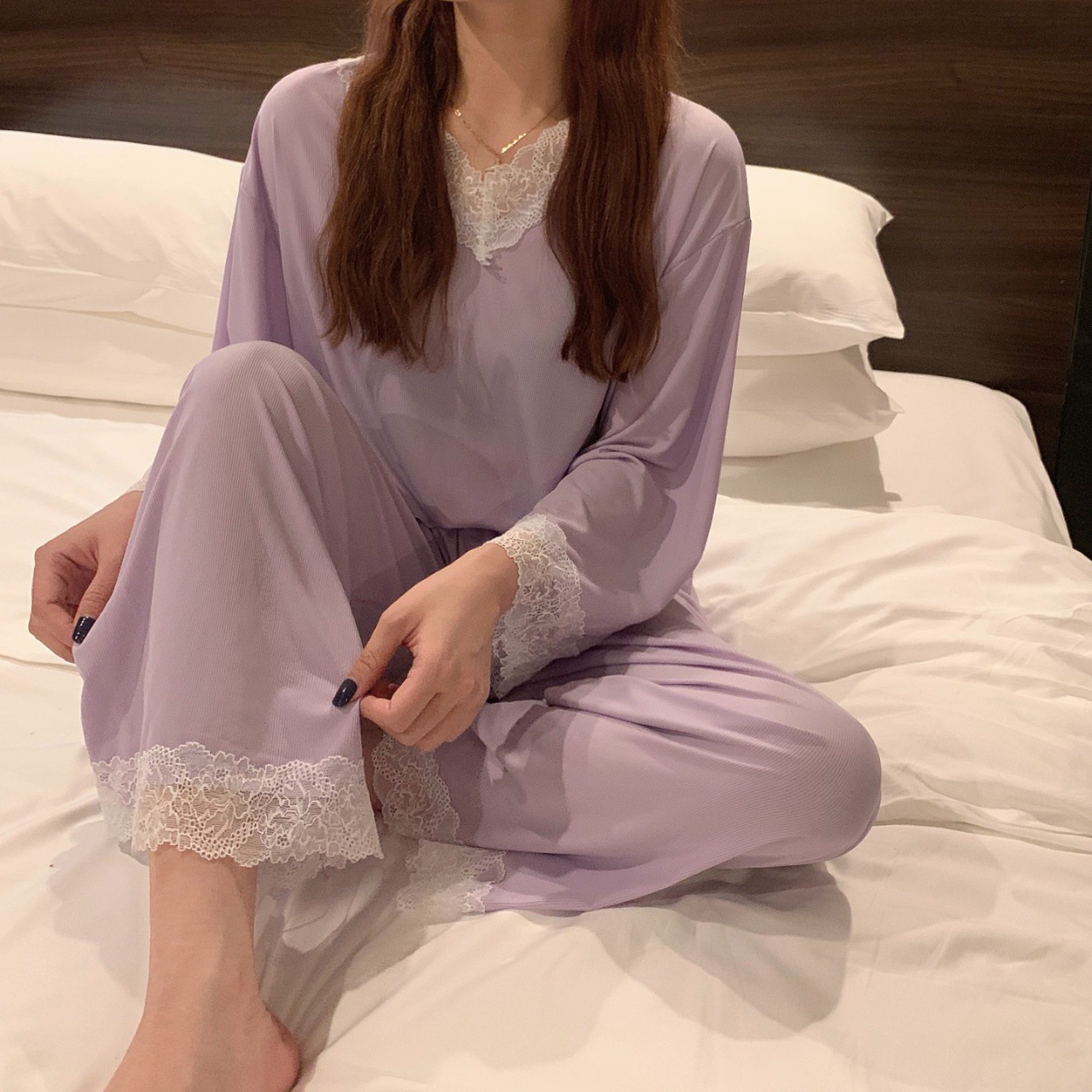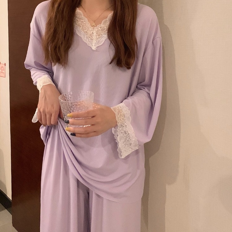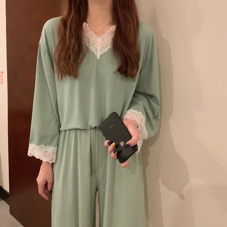 商品名称:睡衣女2024春夏新款长袖性感蕾丝花边二件套家居服ins风女士套装