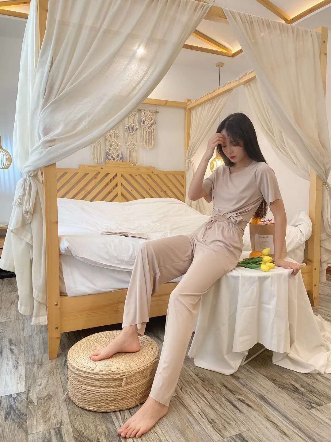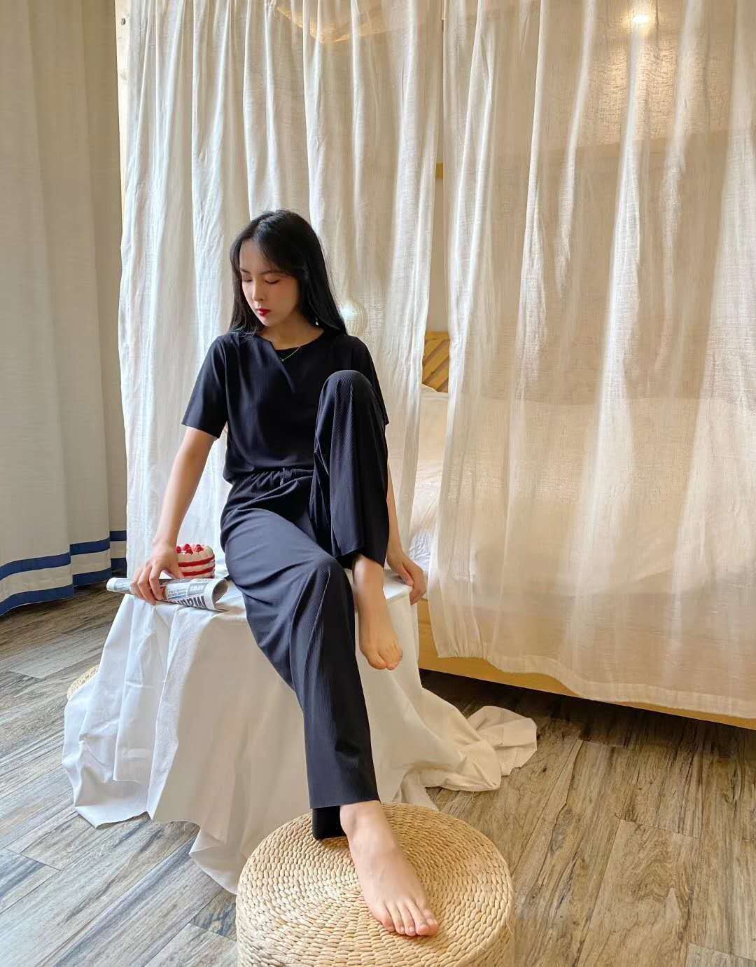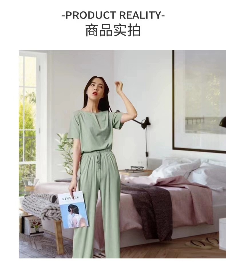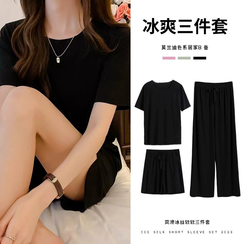 商品名称:冰爽皇后三件套女2024春夏新款宽松套装女休闲冰丝软软套装家居服