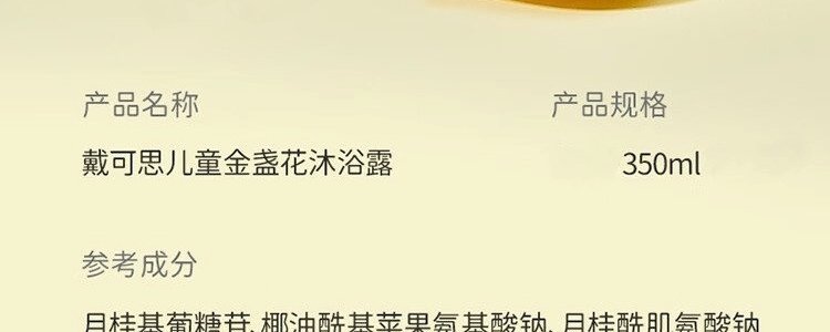 商品名称:戴可思(Dexter)儿童金盏花沐浴露 350ml 3岁+