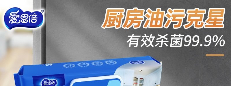 商品名称:爱恩倍 加厚加大清洁厨房湿巾带盖 80片*3包