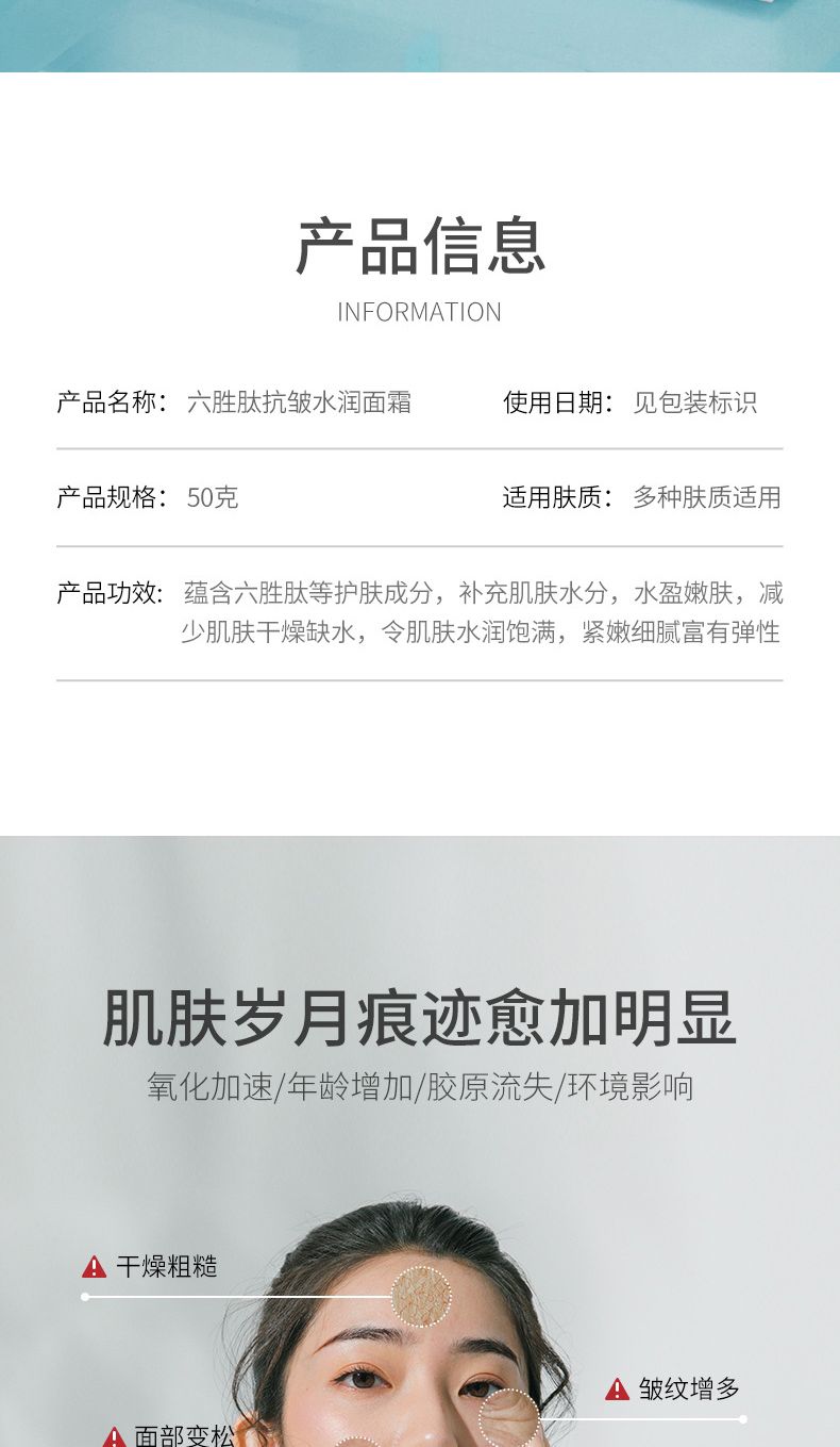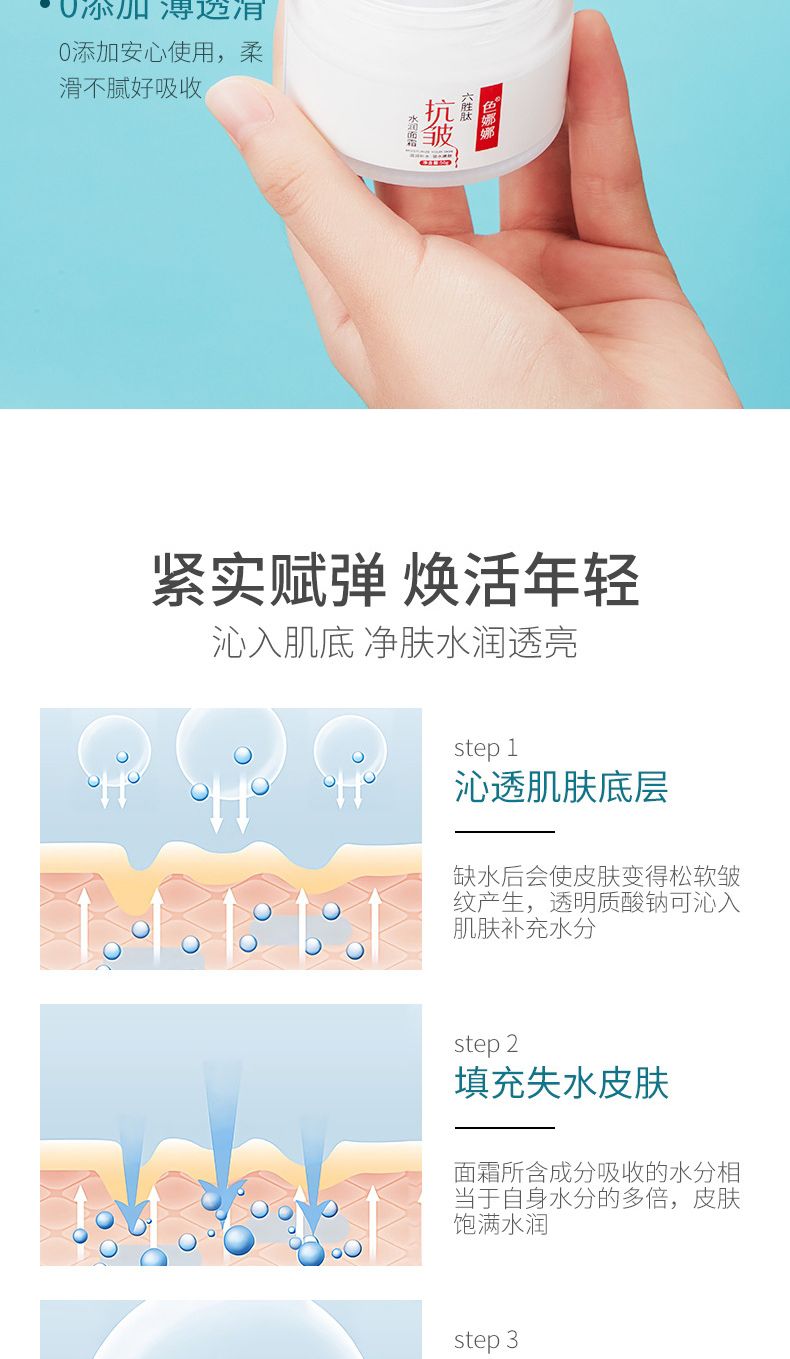 商品名称:色娜娜六胜肽抗皱面霜50g 补水水润 保湿