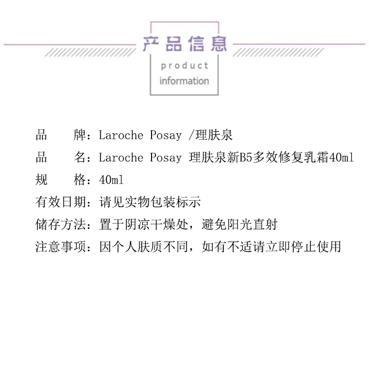 商品名称:理肤泉 新B5多效乳霜 40ml 修护霜淡化印痕痘印