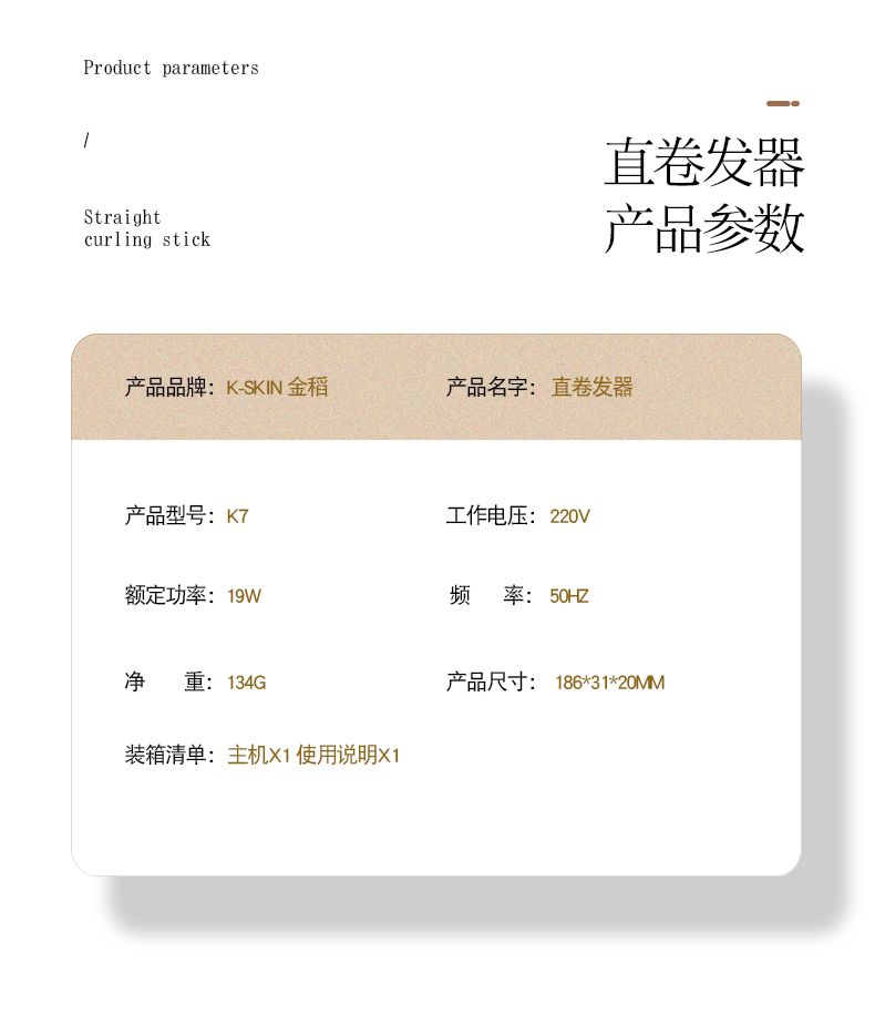 商品名称:K-SKIN 金稻 直卷发夹 K7