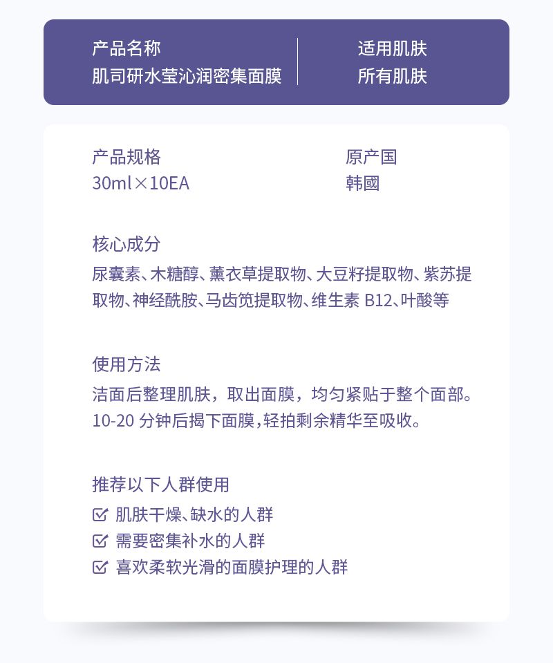 商品名称:肌司研 水莹沁润密集面膜 35ml*10片 急救修护 舒缓肌肤