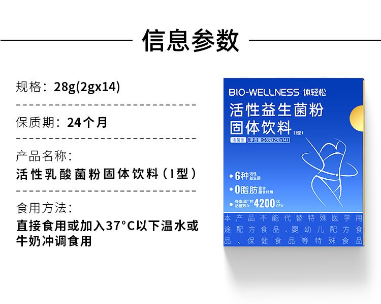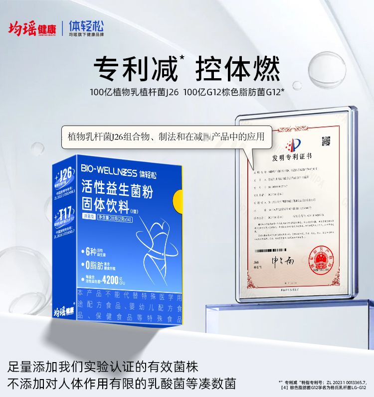 商品名称:均瑶体轻松J26瘦子菌活性益生菌复合益生元 14条/盒