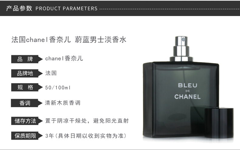 商品名称:Chanel/香奈儿 蔚蓝男士淡香水 50ml/100ml/150ml 国内专柜版