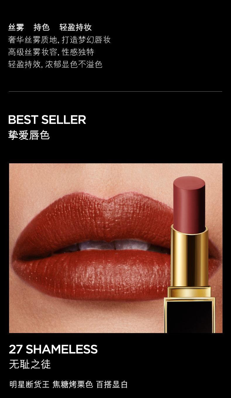 商品名称:TOMFORD汤姆福特 细黑管唇膏 27号色 国内专柜版