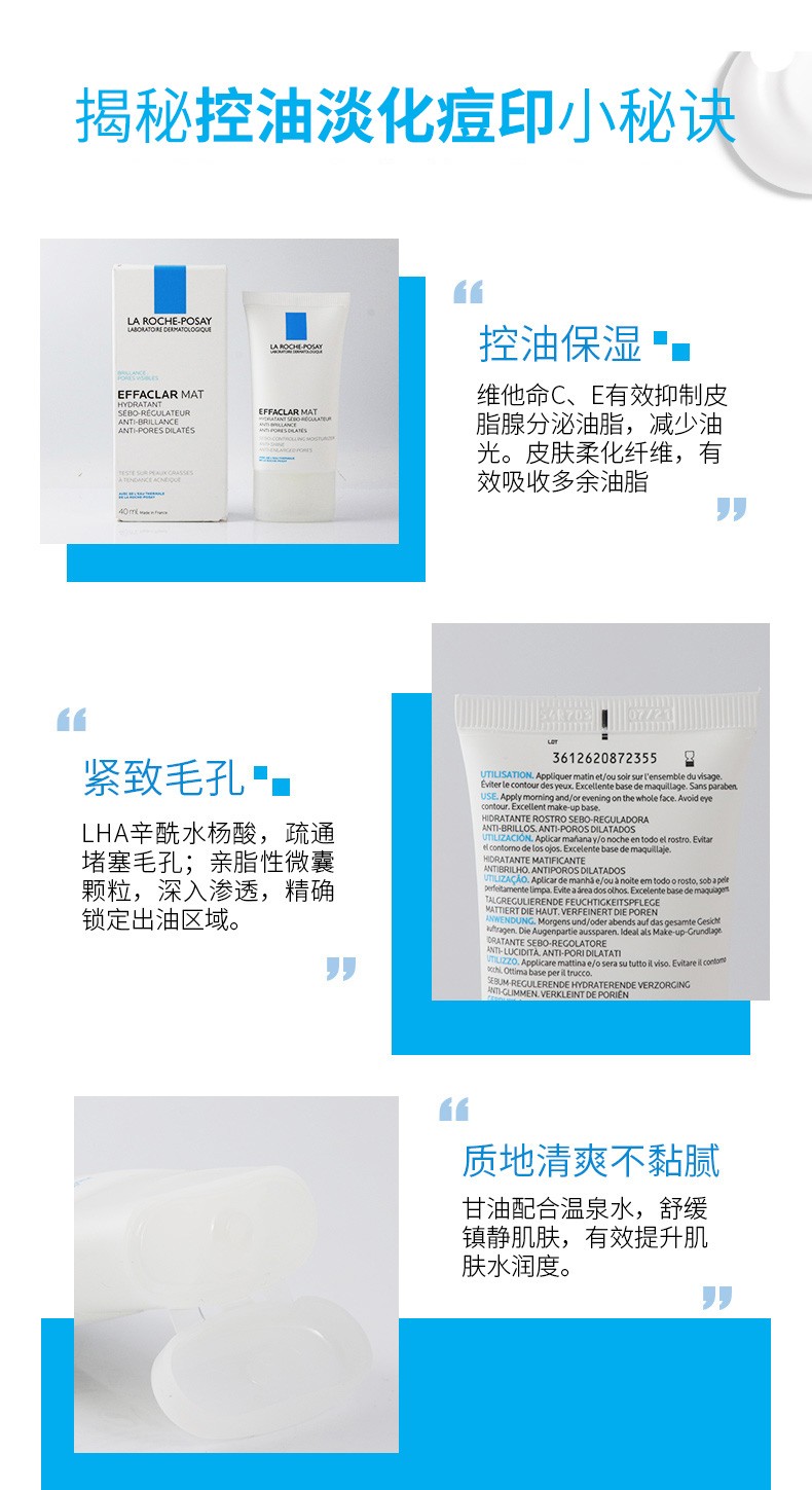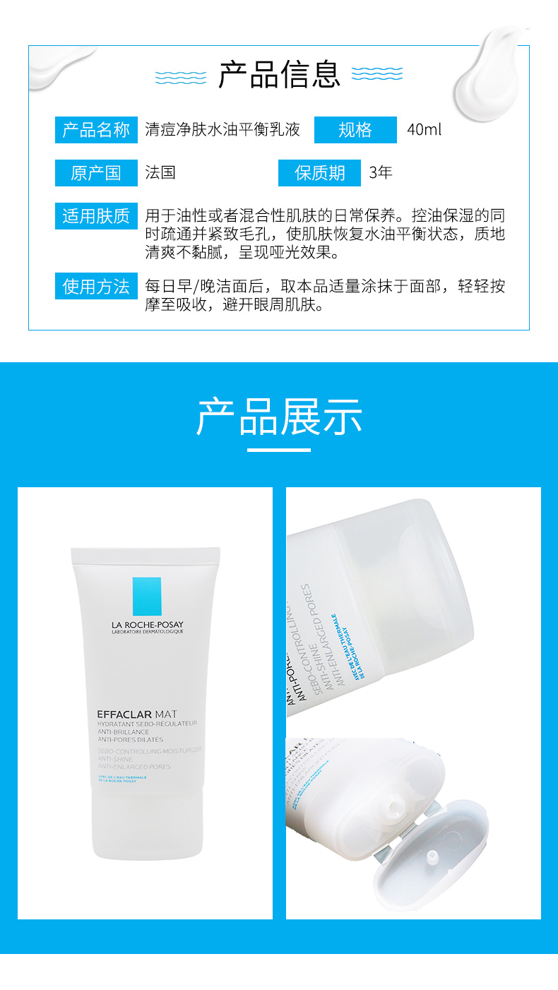 商品名称:La Roche Posay/理肤泉 mat乳清痘净肤水油平衡保湿乳液 40ml