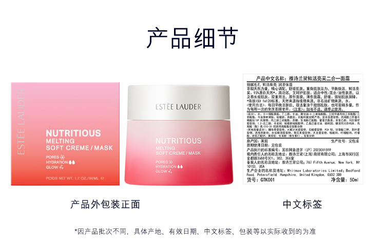 商品名称:雅诗兰黛 红石榴精华面霜 鲜活亮采二合一面霜 50ml 国内专柜版