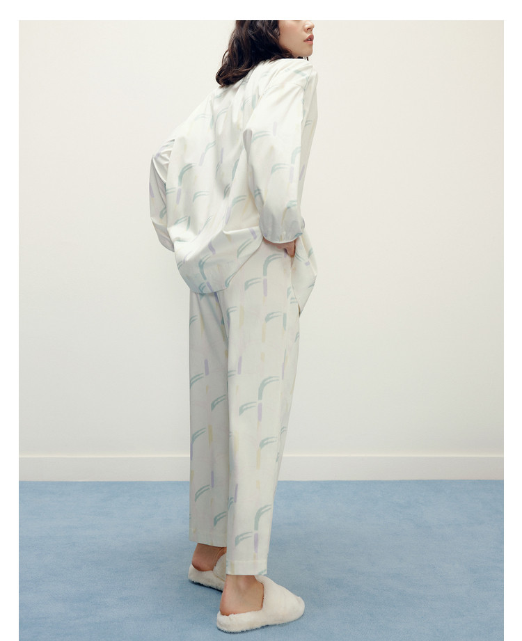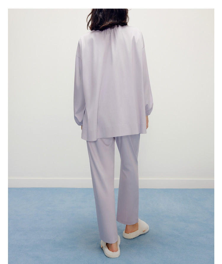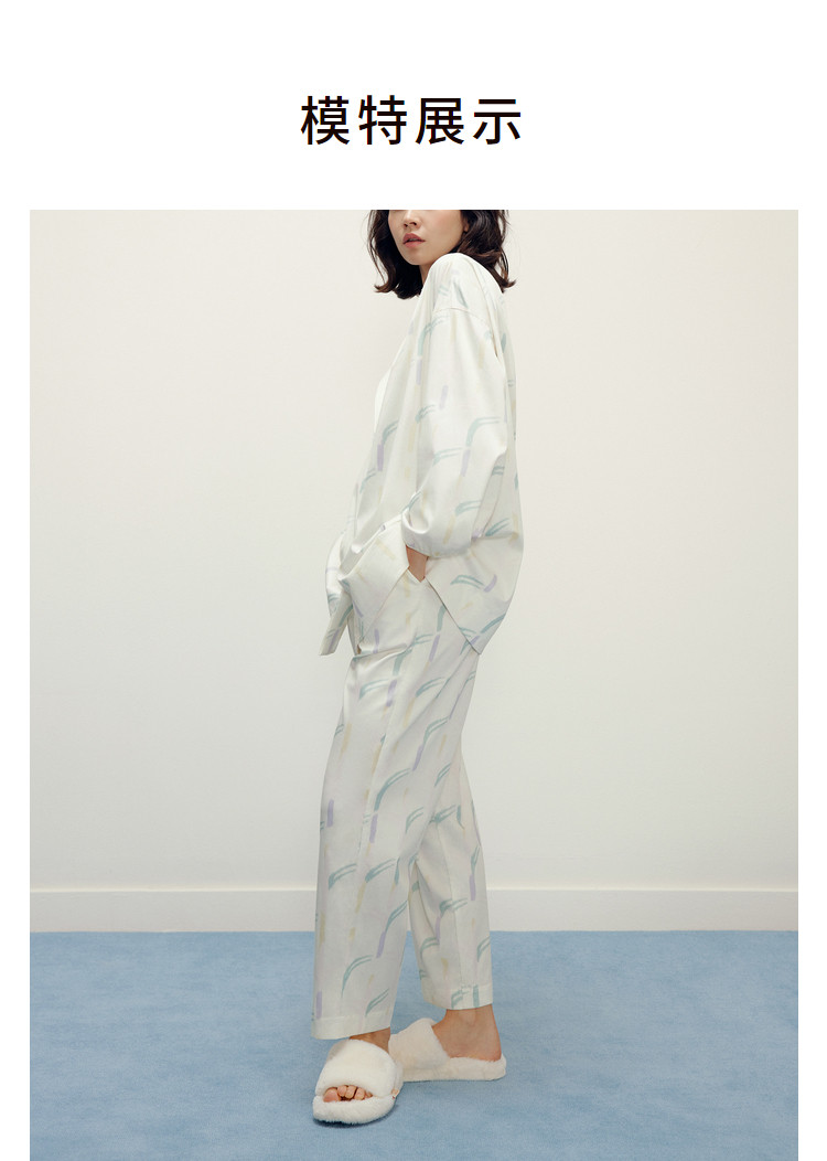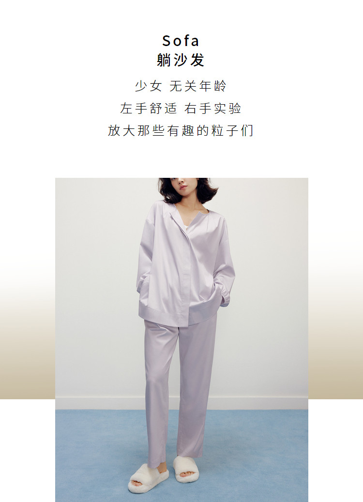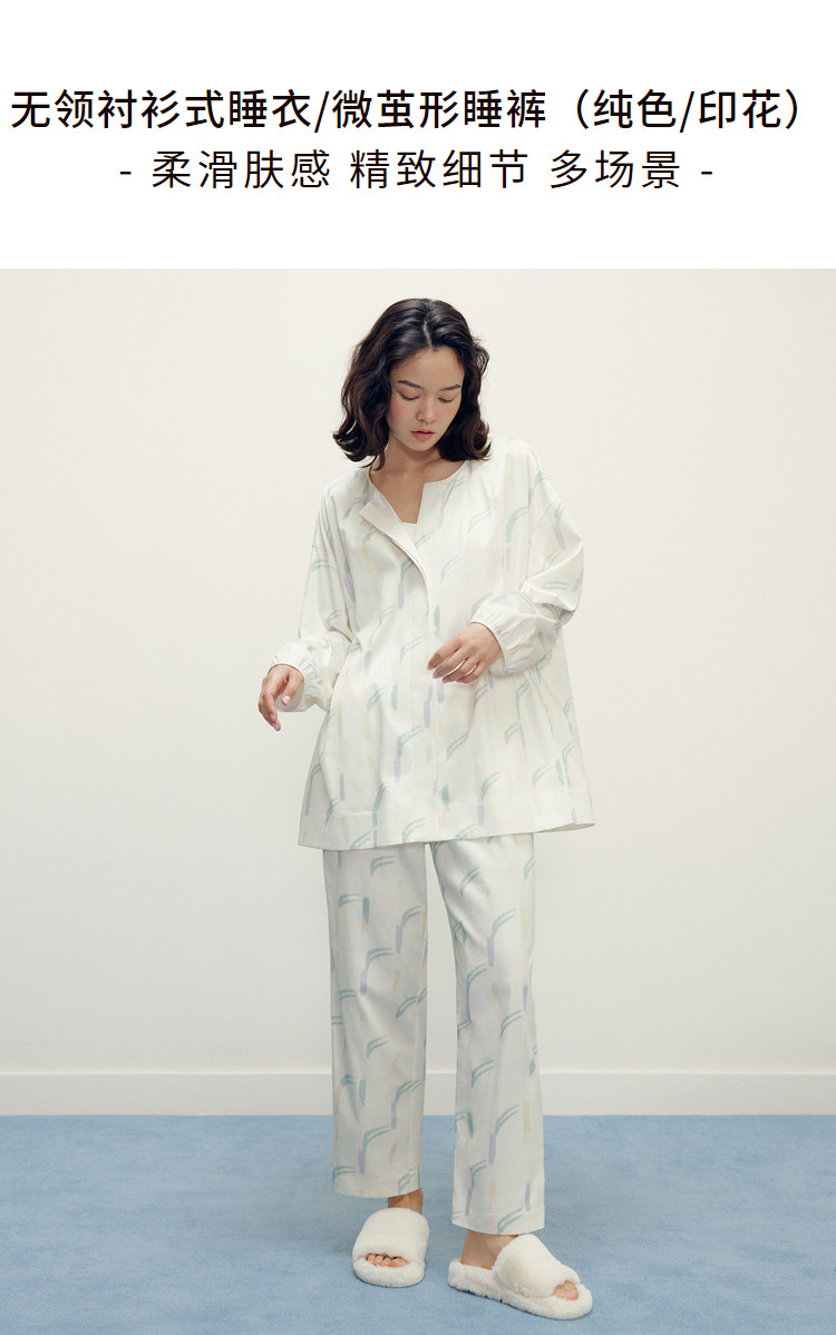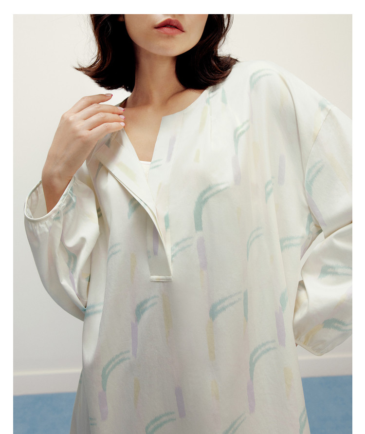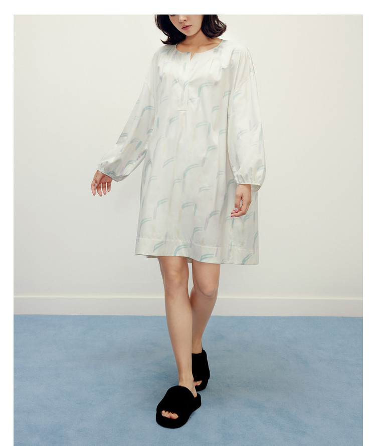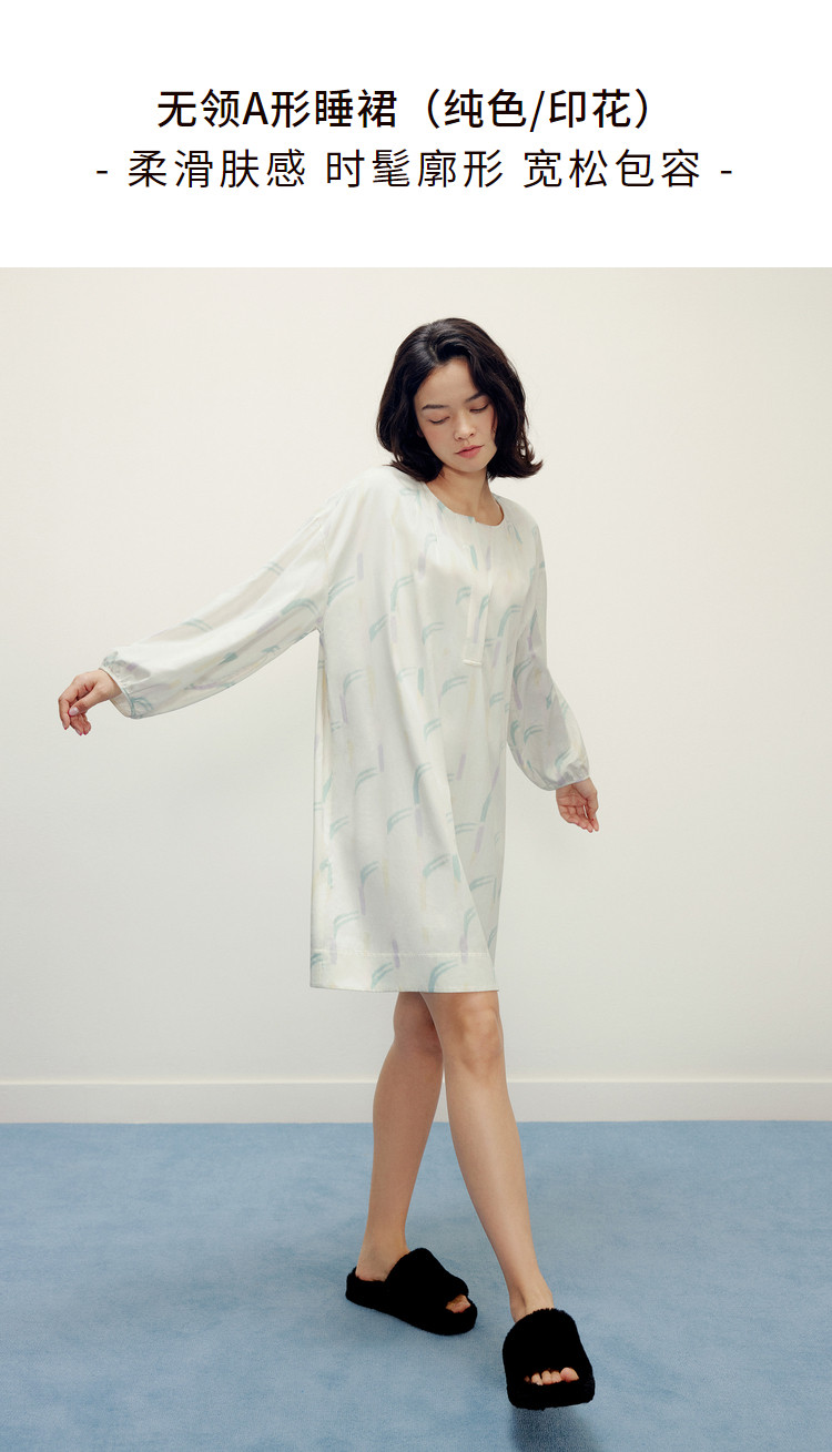 女士无领衬衫式皱睡衣/茧形睡衣/睡裙莫代尔 018634