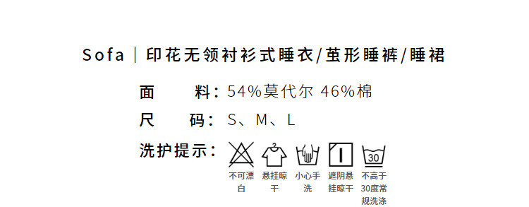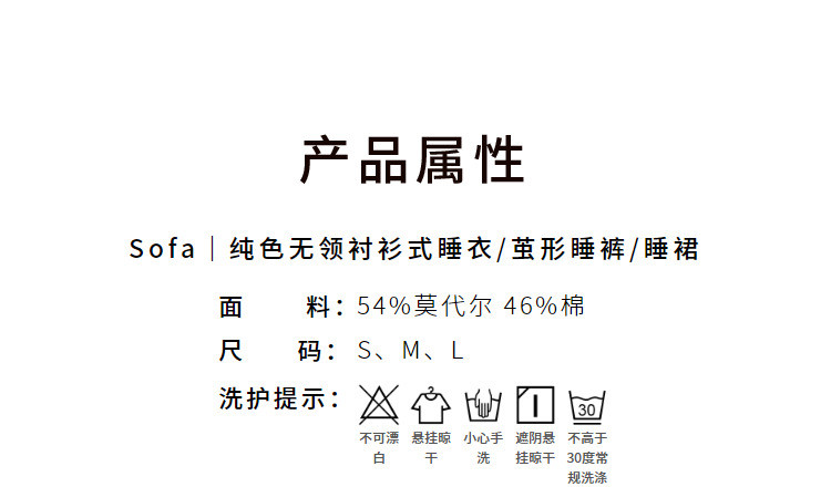 商品名称:女士无领衬衫式皱睡衣/茧形睡衣/睡裙莫代尔 018634
