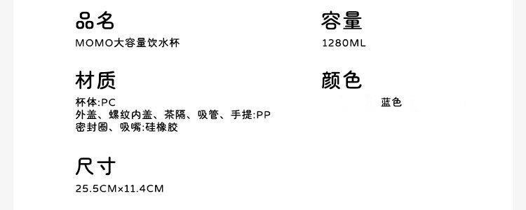 商品名称:小茶日记 momo大容量吸管杯 蓝色 1280ml