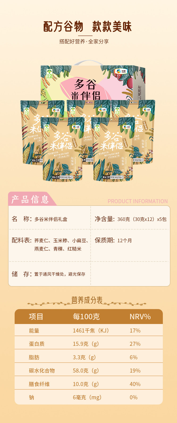 商品名称:中粮金盈享轻福多谷米低脂控糖伴侣礼盒1800g