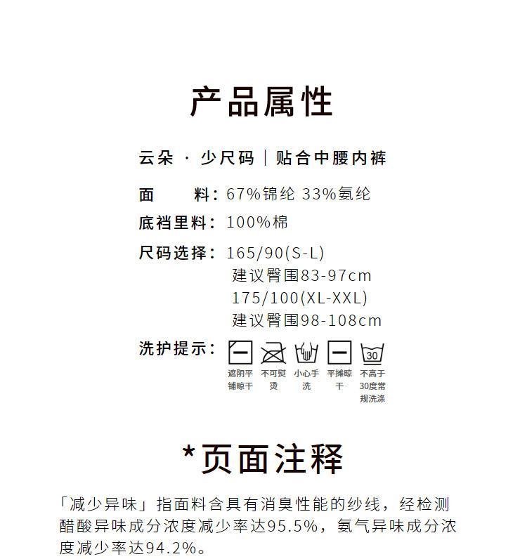商品名称:云朵少尺码十周年贴合中腰女士内裤柔软舒适 358090
