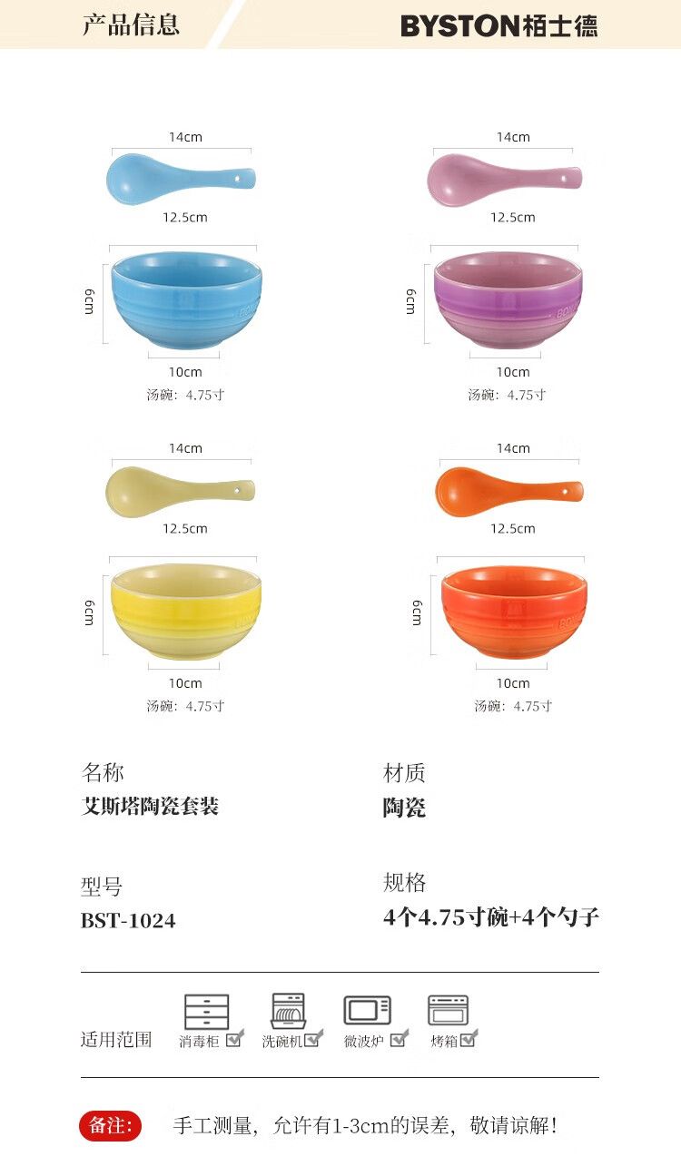 商品名称:栢士德(BYSTON)艾斯塔陶瓷碗套装4.75寸北欧风家用餐具组合BST-1024 碗*4个+勺子*4个