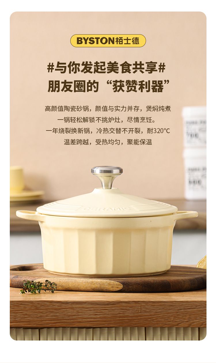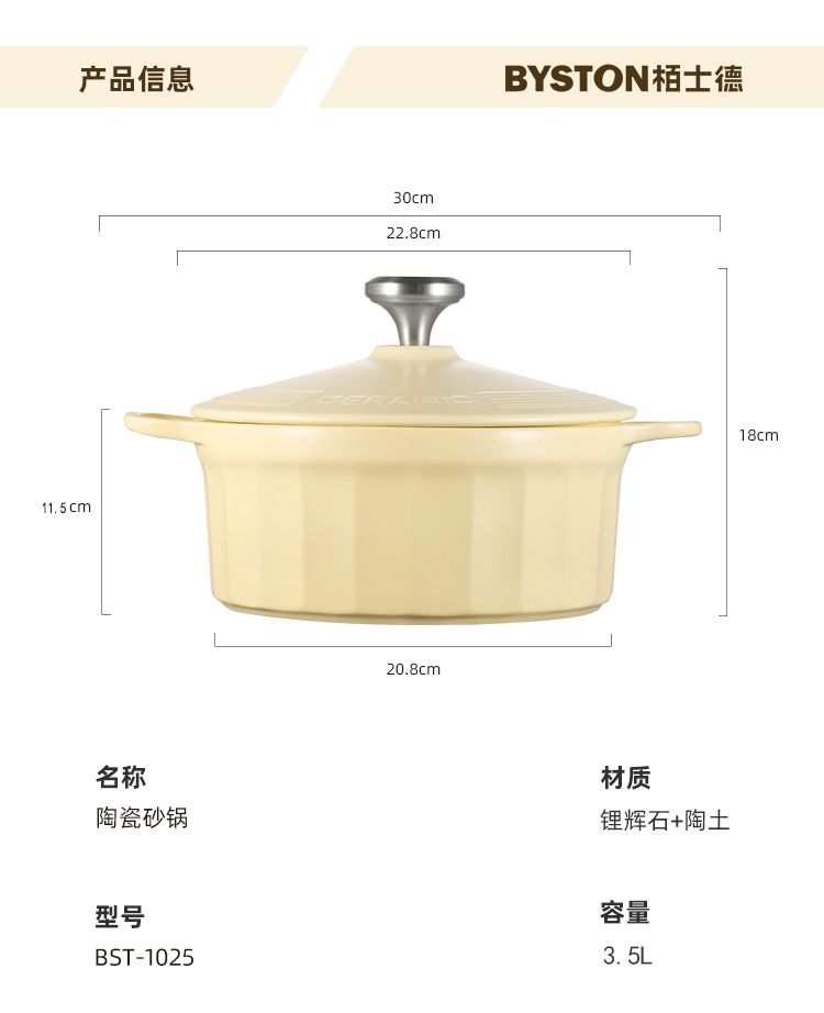 商品名称:栢士德砂锅汤锅煲汤家用陶瓷煲耐高温煲仔饭3.5L大容量燃气灶BST-1025 丽达斯陶瓷砂锅