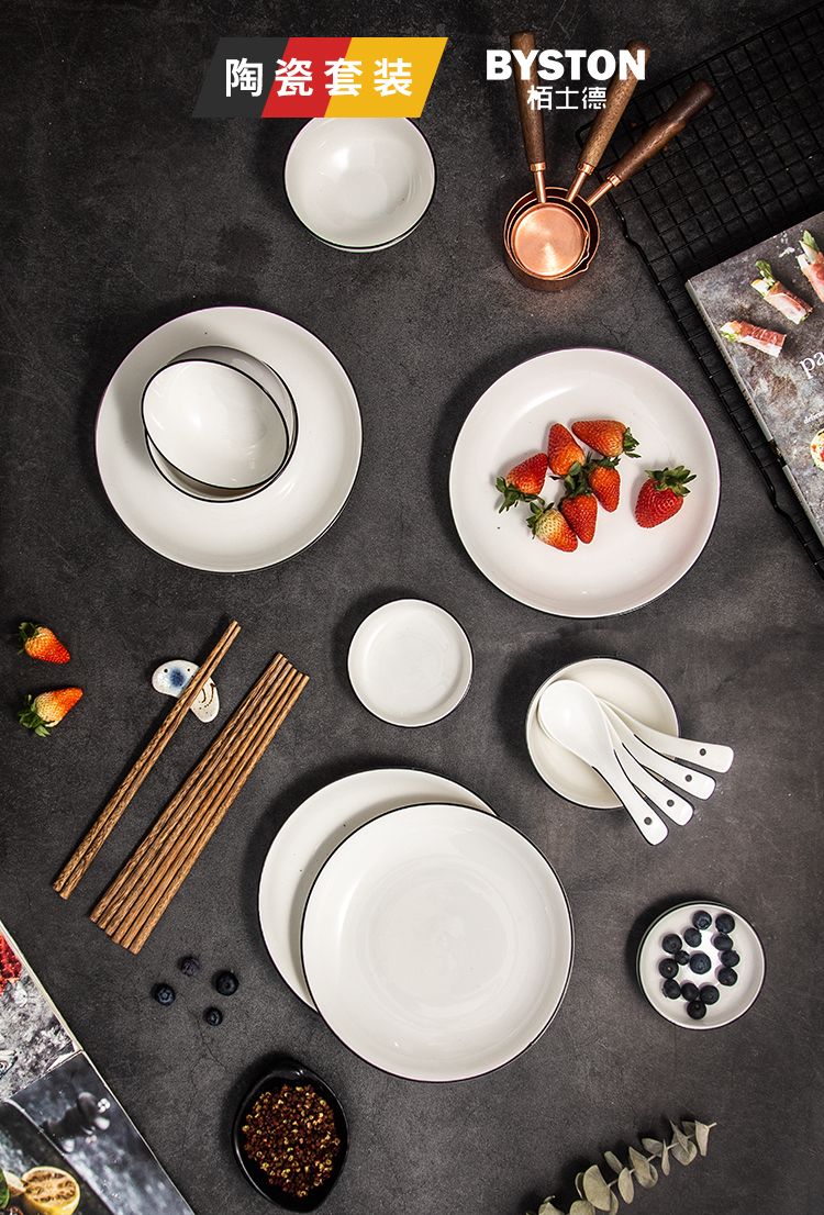 栢士德 福塔套装4.5寸直口碗4个+汤匙+8寸汤盘+筷子+3.8寸油碟BST-1019