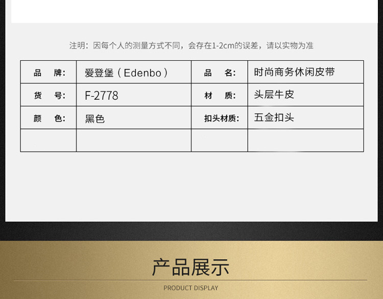 商品名称:爱登堡(Edenbo) 时尚休闲皮带自动扣商务裤带牛皮双卡槽防滑送礼盒礼袋