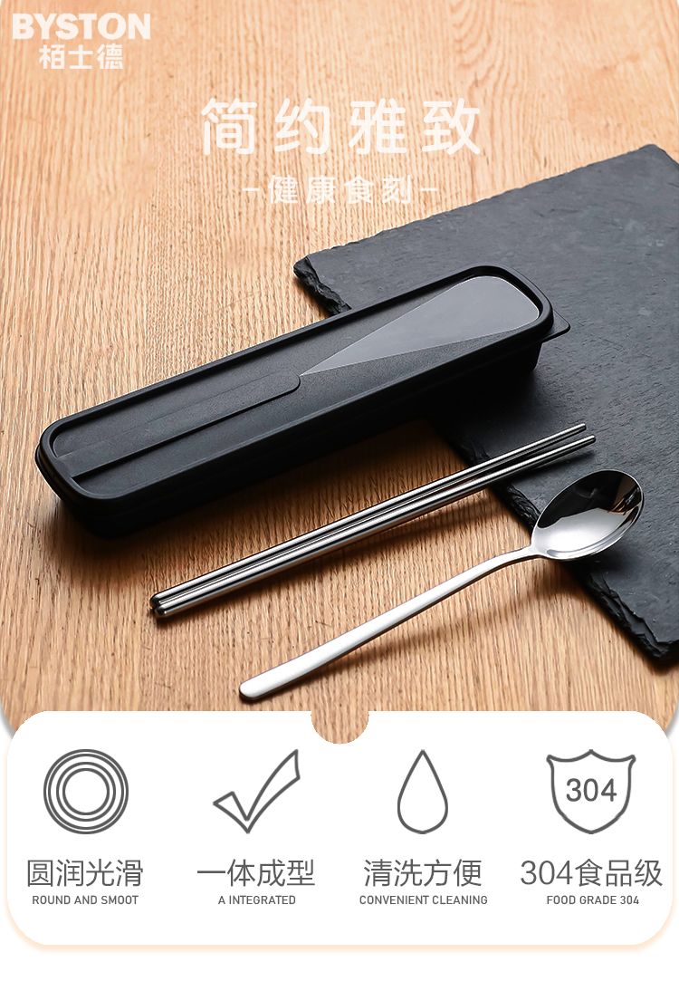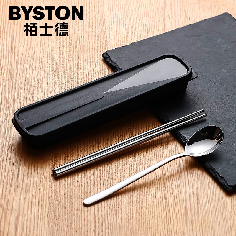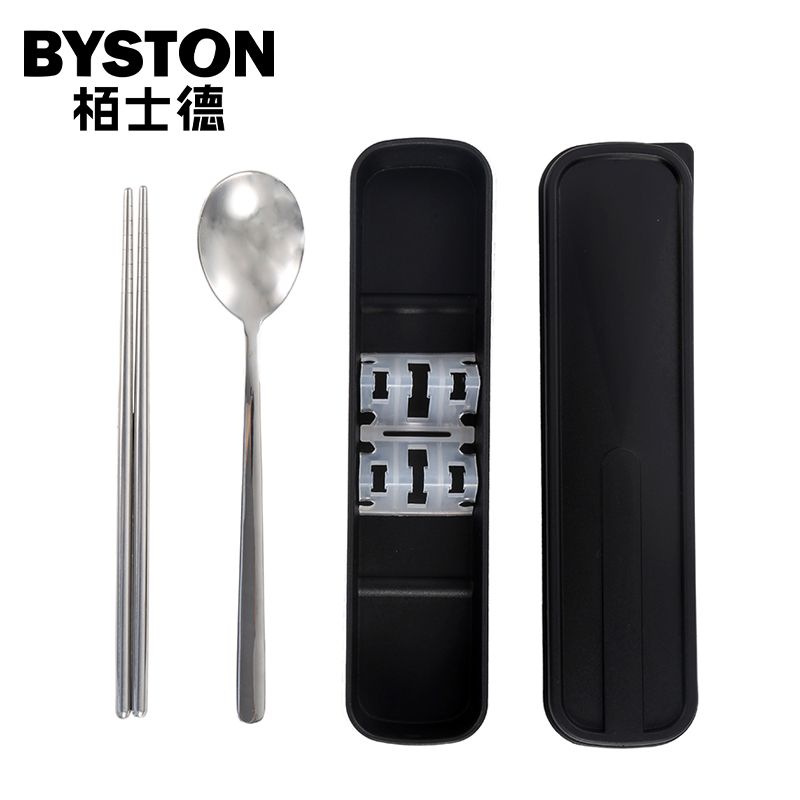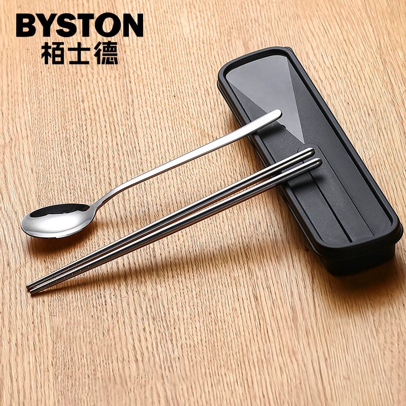栢士德BYSTON 欢乐颂套装不锈钢筷子勺子收纳盒便携套装 BST-124D