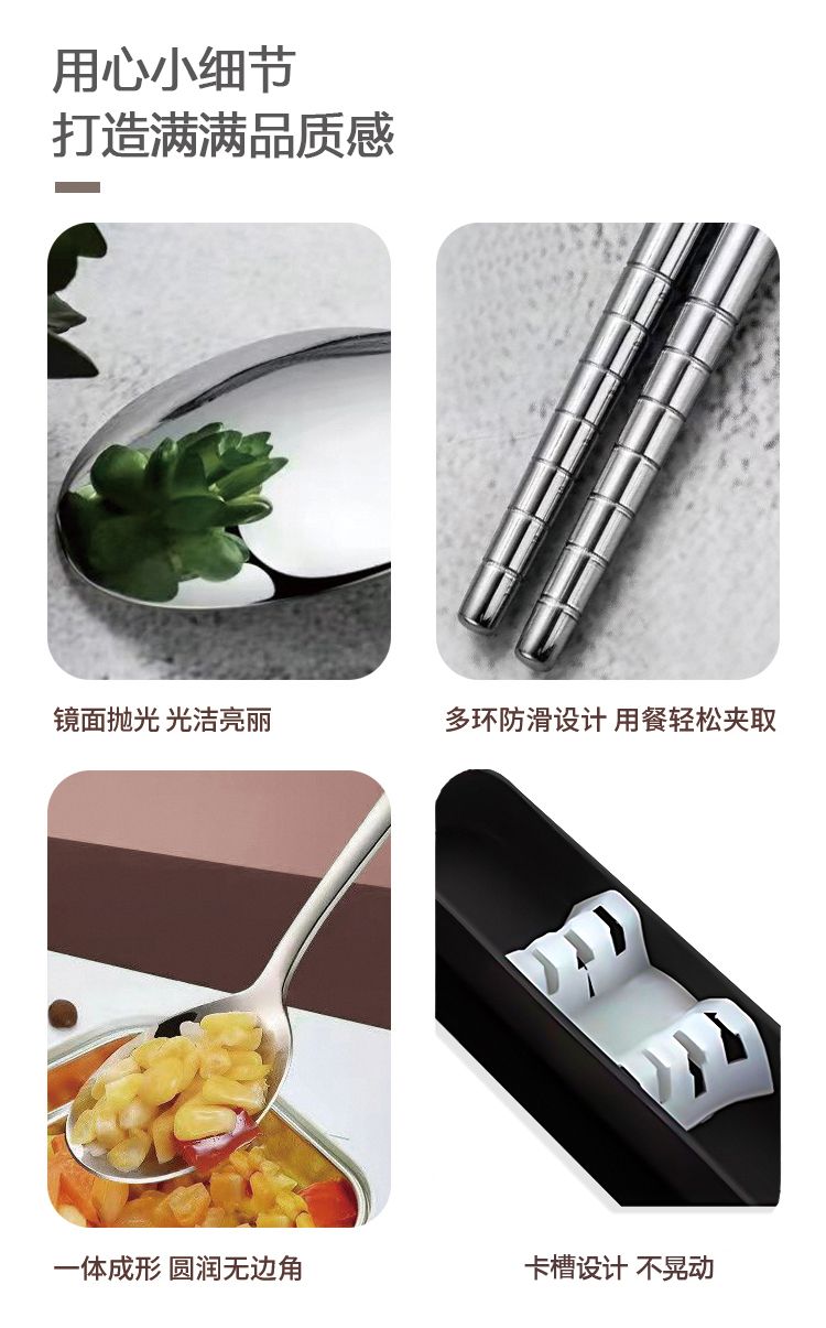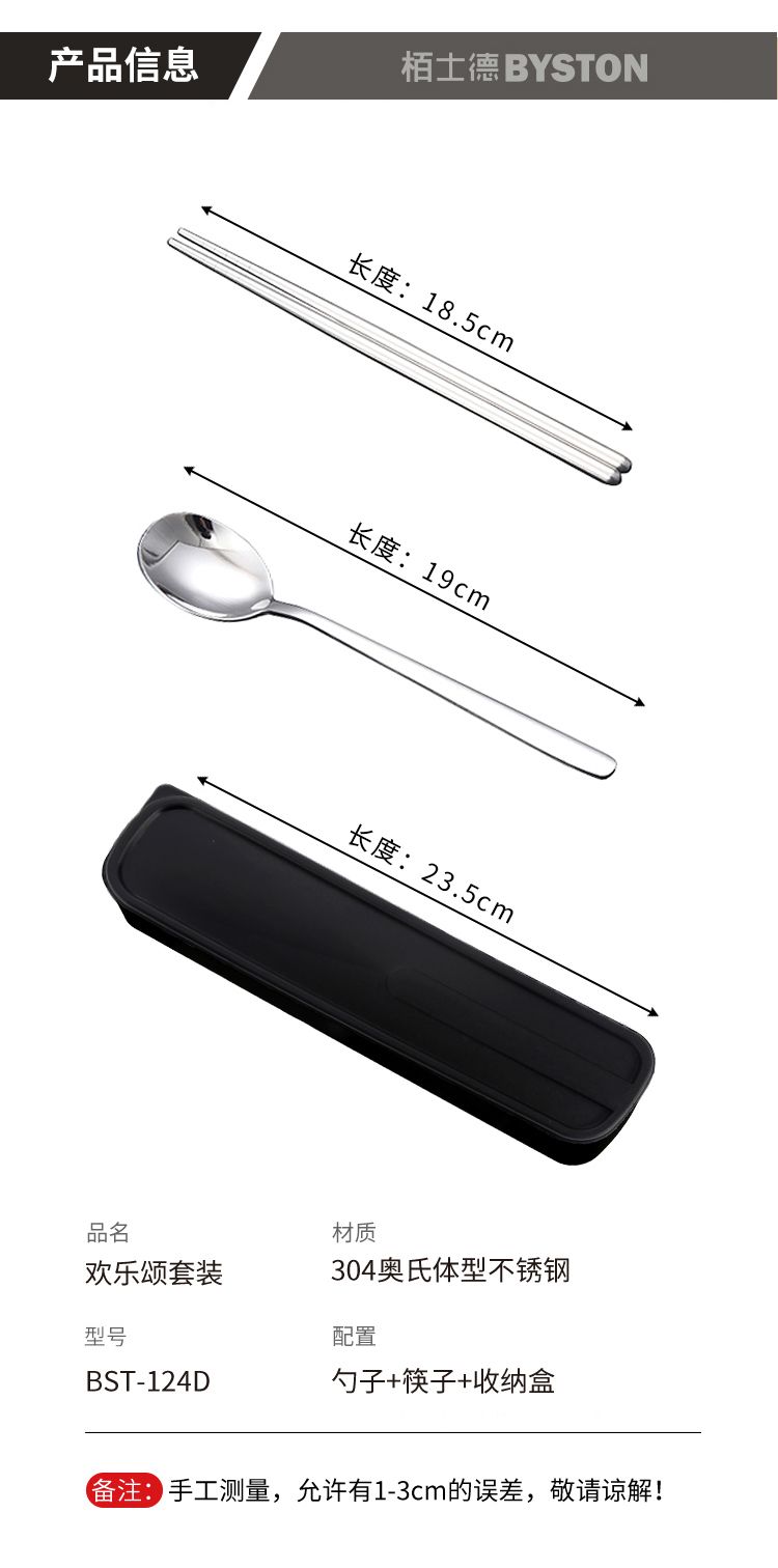 商品名称:栢士德BYSTON 欢乐颂套装不锈钢筷子勺子收纳盒便携套装 BST-124D